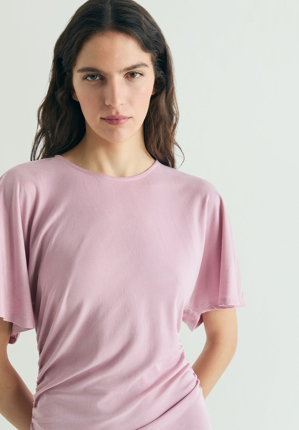 GATHERED CUPRO DRESS
