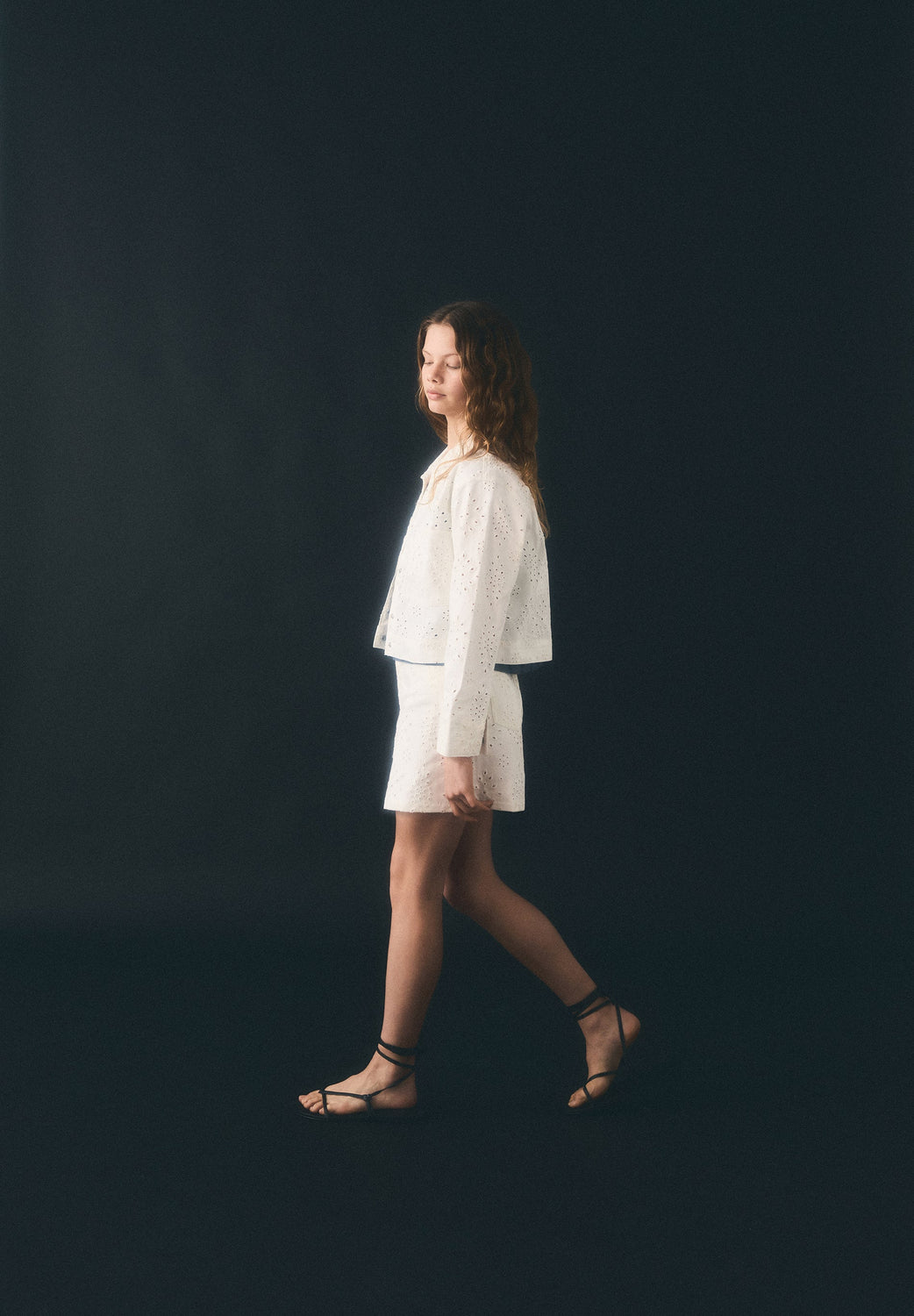 Mini skirt made of 100% cotton. Perforated fabric. Slim fit. 5 pockets.