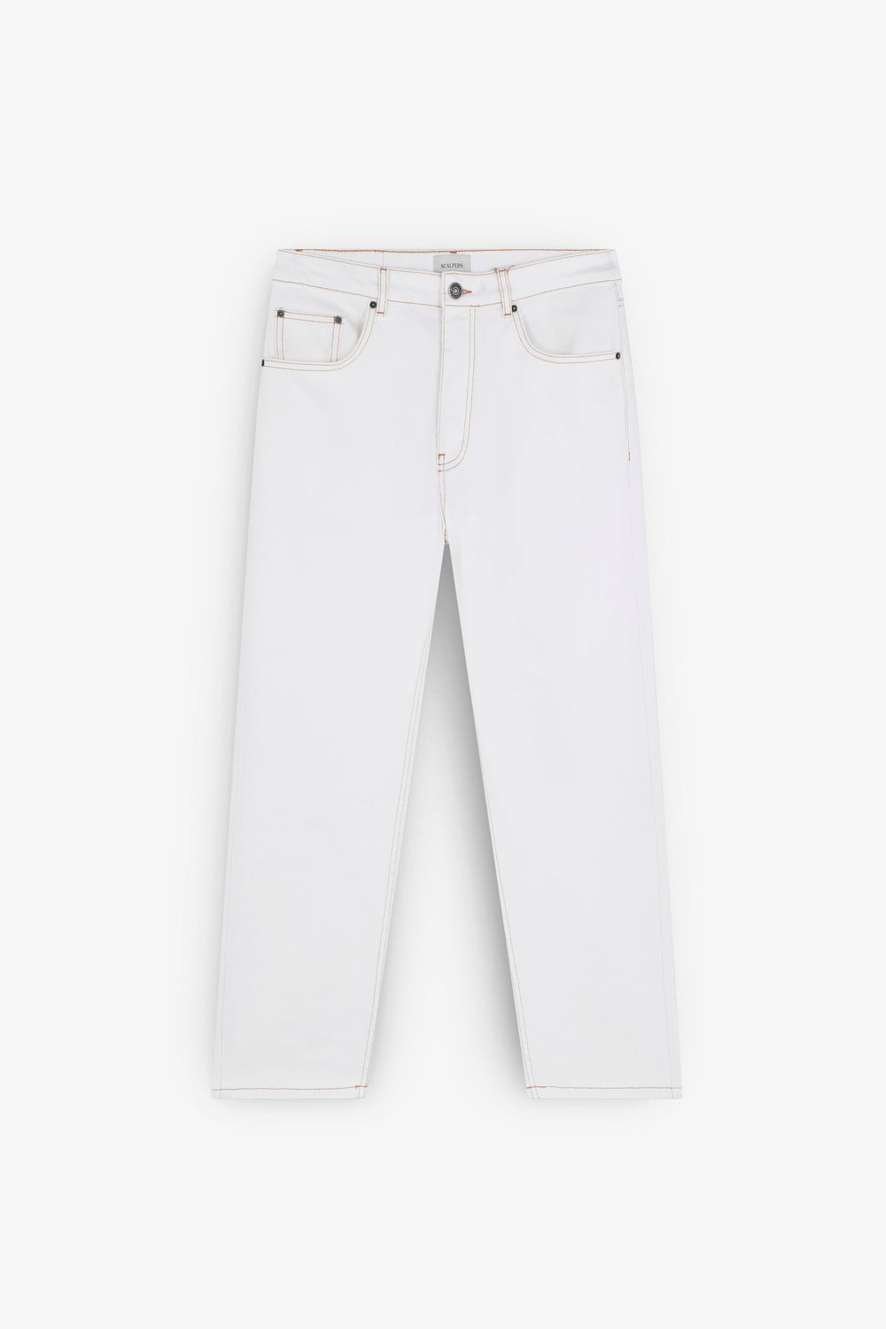 Jean confectionné dans un mélange de coton. Coupe cropped, fermeture boutonnée et fermeture éclair, et poches sur les côtés et à l’arrière. Passants de ceinture.