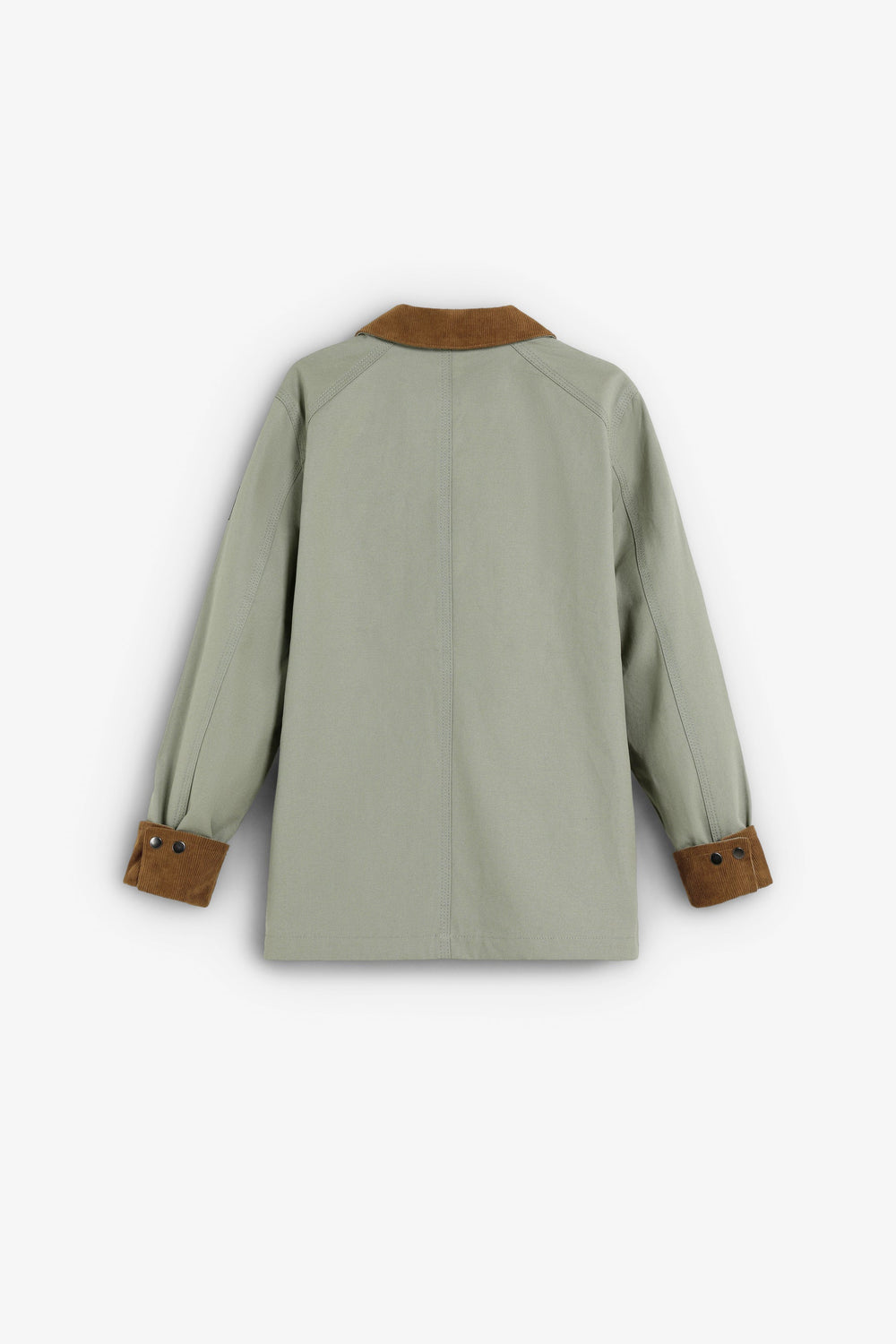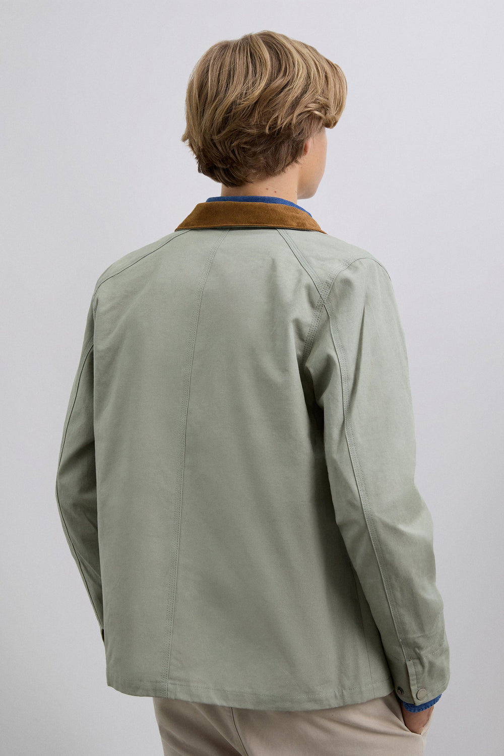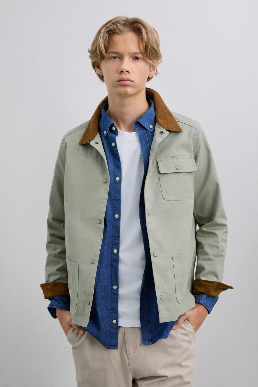 Jacket made of 100% BCI cotton. Contrast shirt collar. Long sleeves. Button and zip fastening. Front and chest pockets with button fastening. Logo label detail on the front pocket.