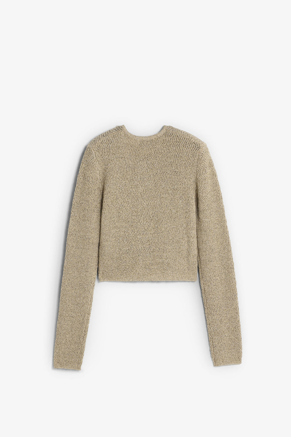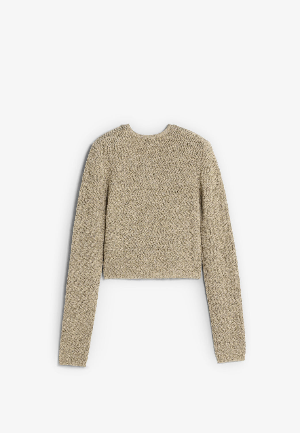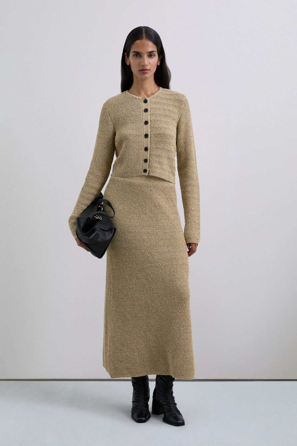 Knit cardigan. Round neck. Long sleeves. Contrast front button fastening.