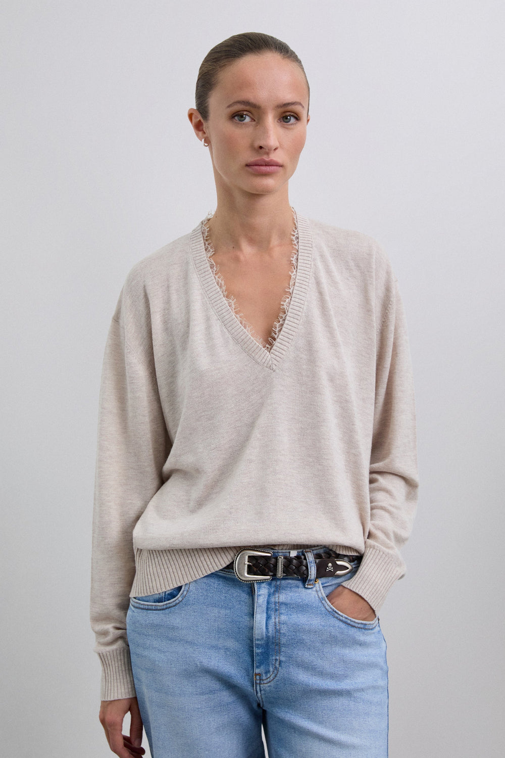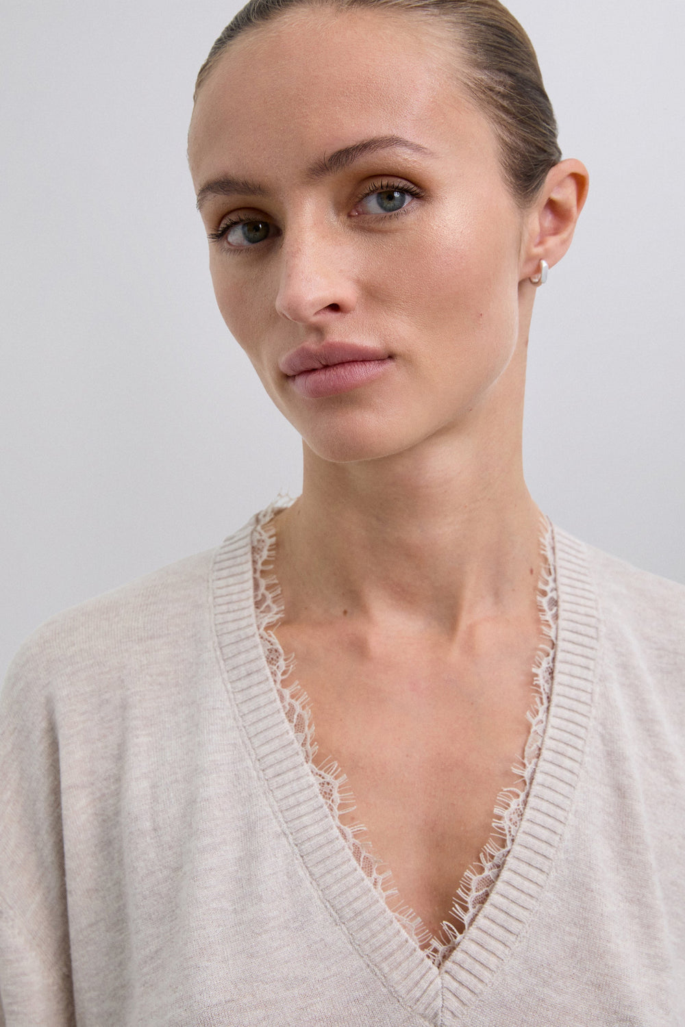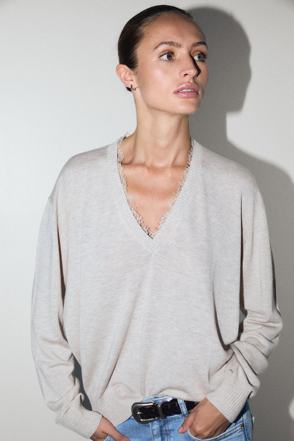 V-NECK SWEATER WITH LACE