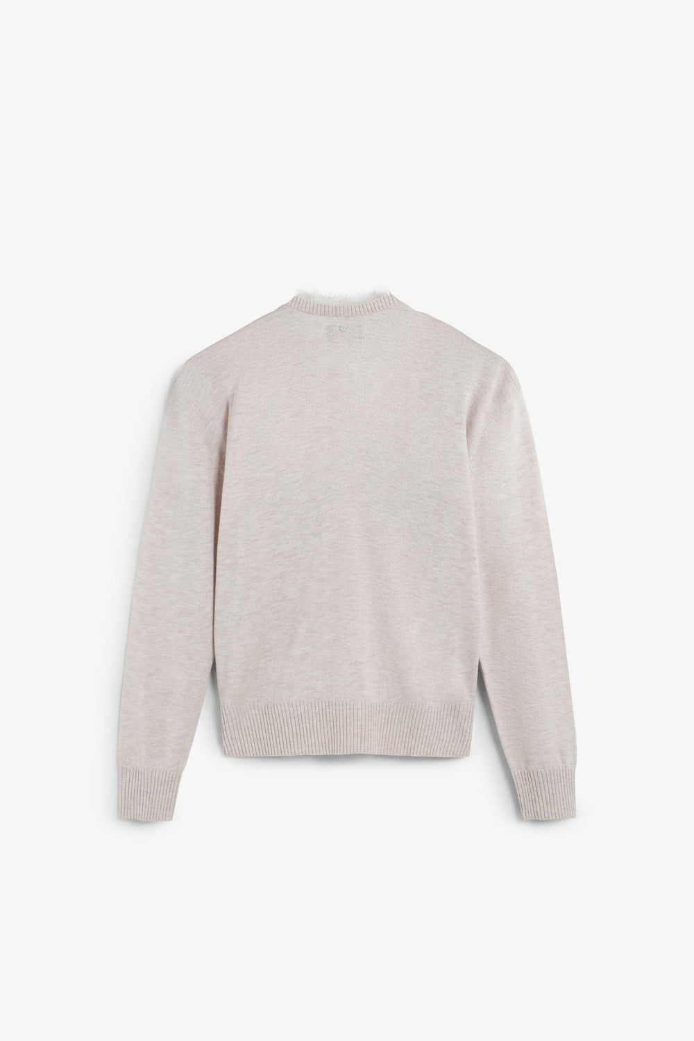 Sweater made of a wool and viscose blend. Regular fit. V-neck with lace details. Long sleeves with ribbed cuffs and hem.