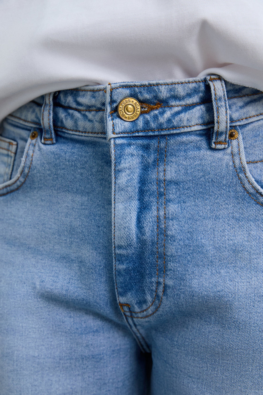 Jeans made of a 100% slightly stretch cotton fabric. Regular fit, full length. Mid-rise with zip and button fastening. Belt loops at the waist. Front and back pockets.