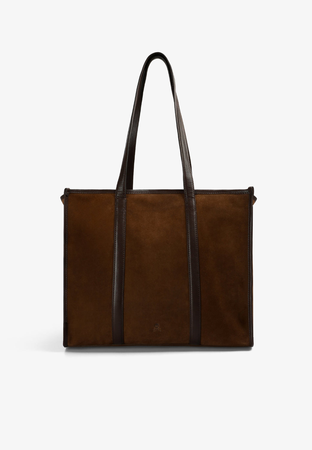 Tote bag made from 100% suede. Contrast leather details. Zip fastening.