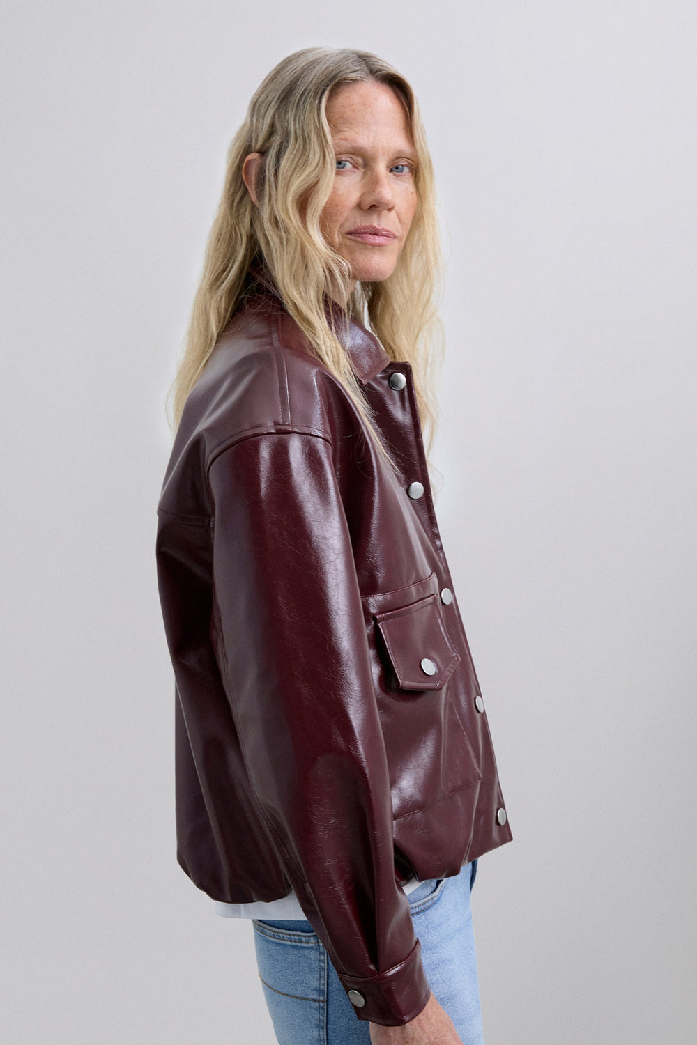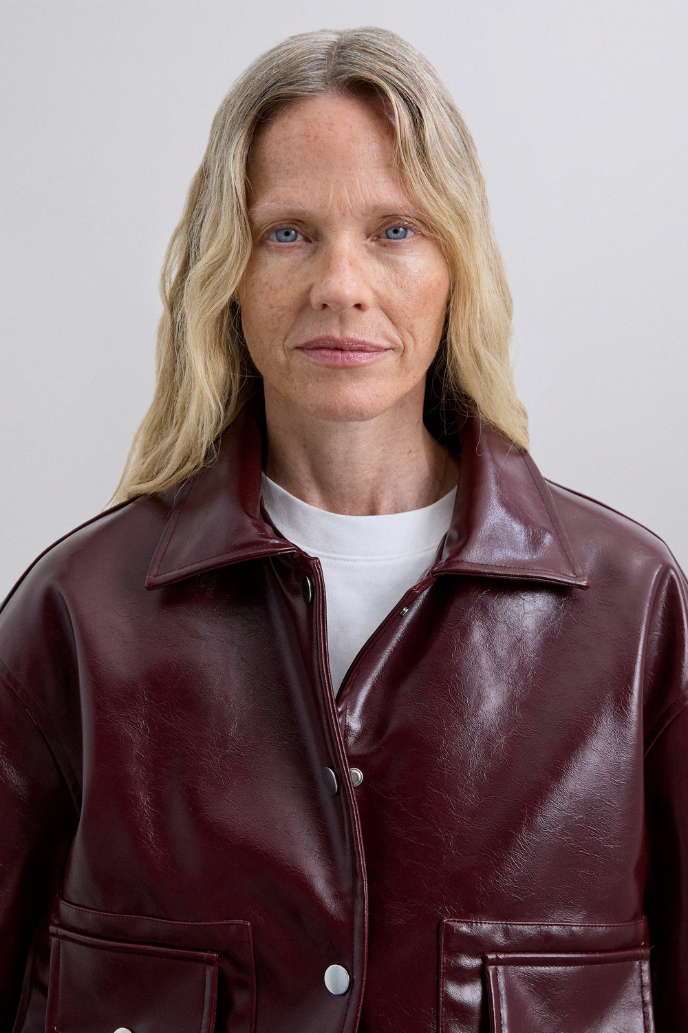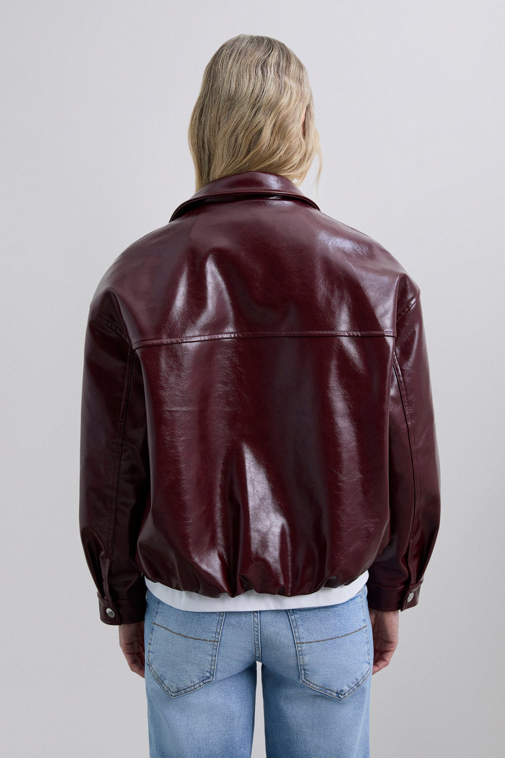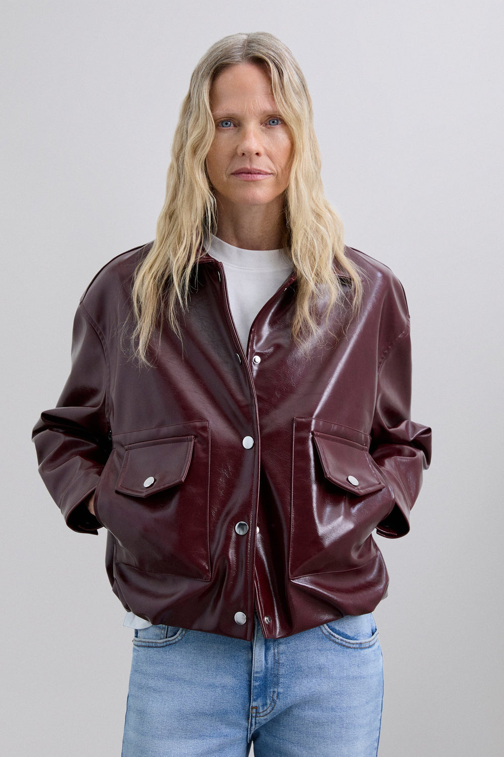 Bomber jacket with shirt collar design. Front button fastening. Front pockets with flap and button. Cuffs with button fastening.