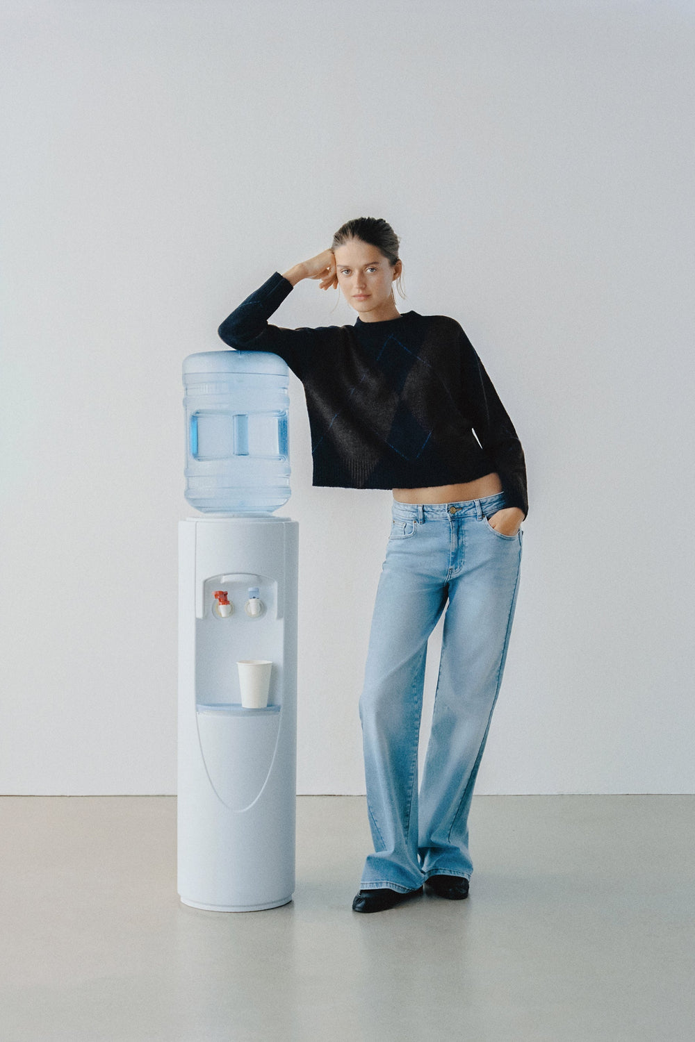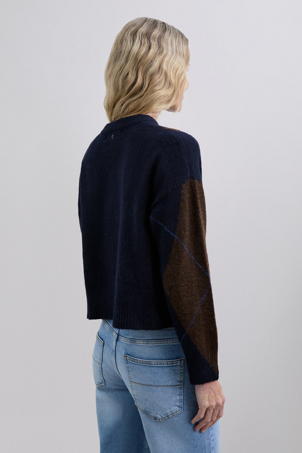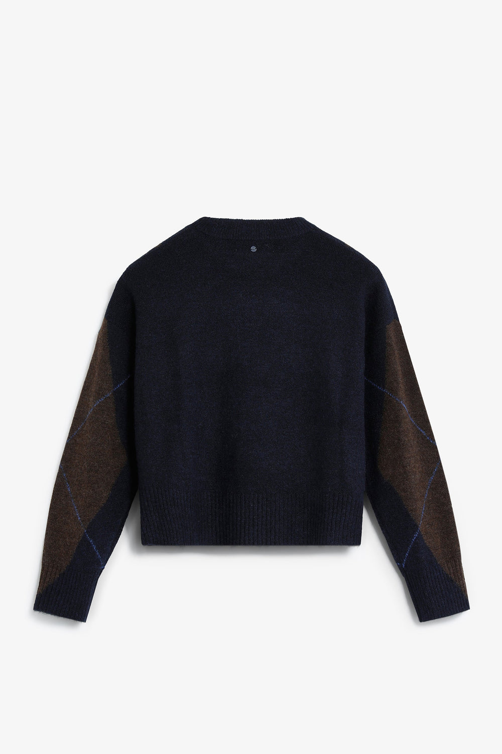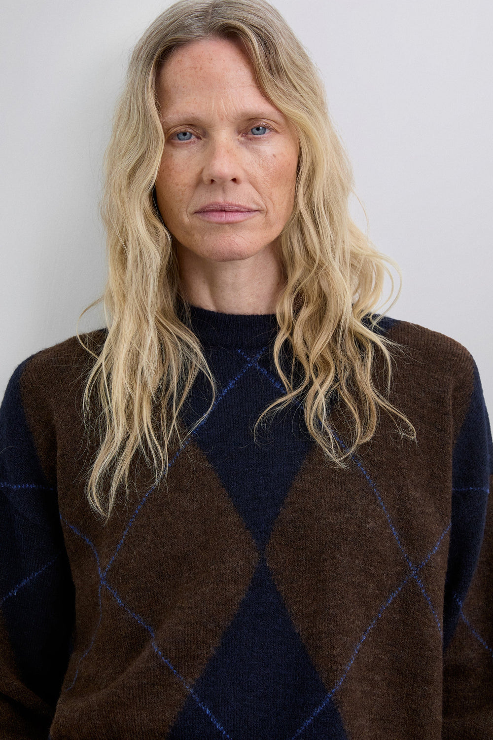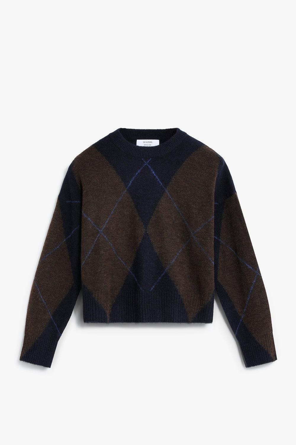Sweater made of wool blend. Diamond pattern. Regular fit. Ribbed round neck. Long sleeves with ribbed cuffs.