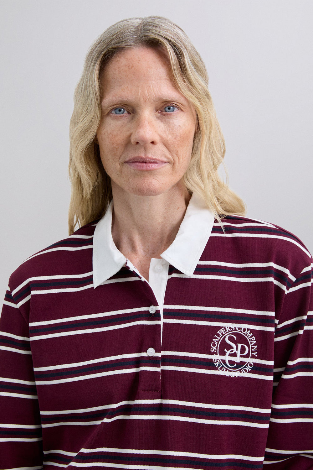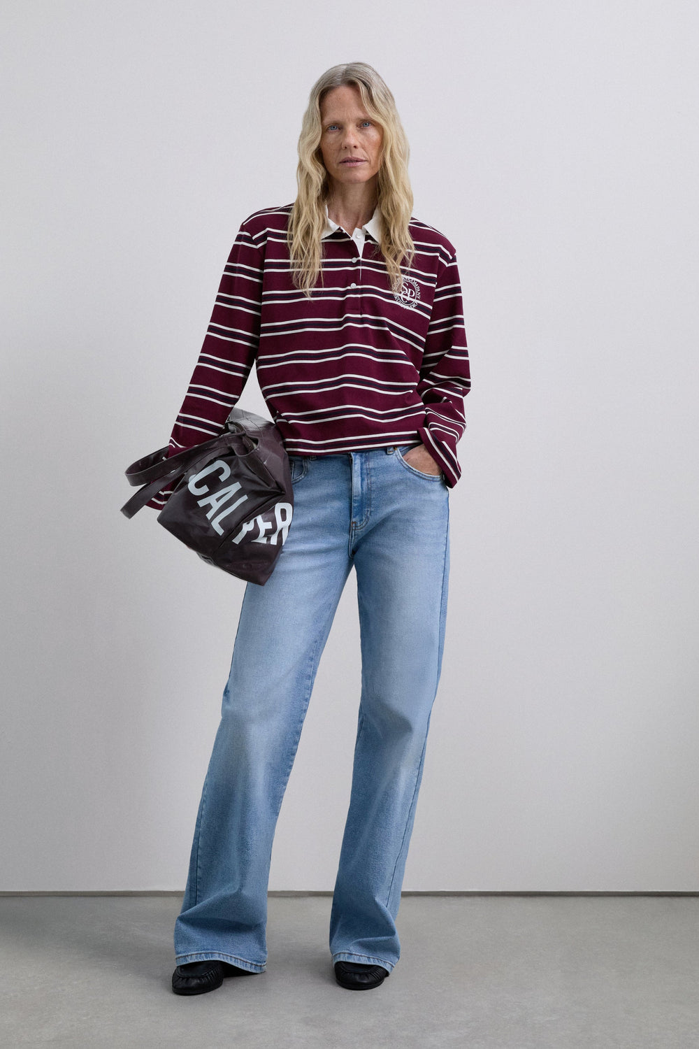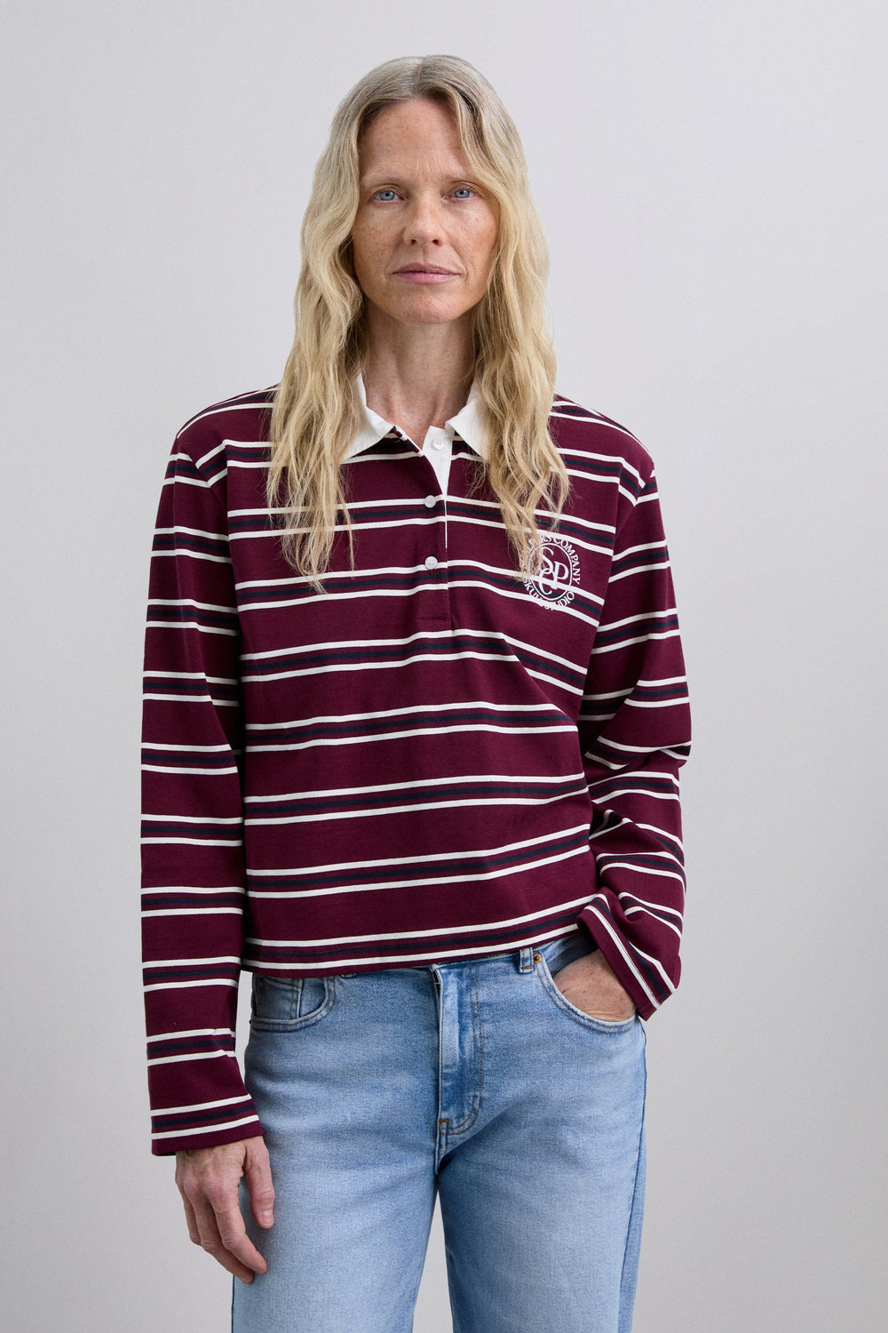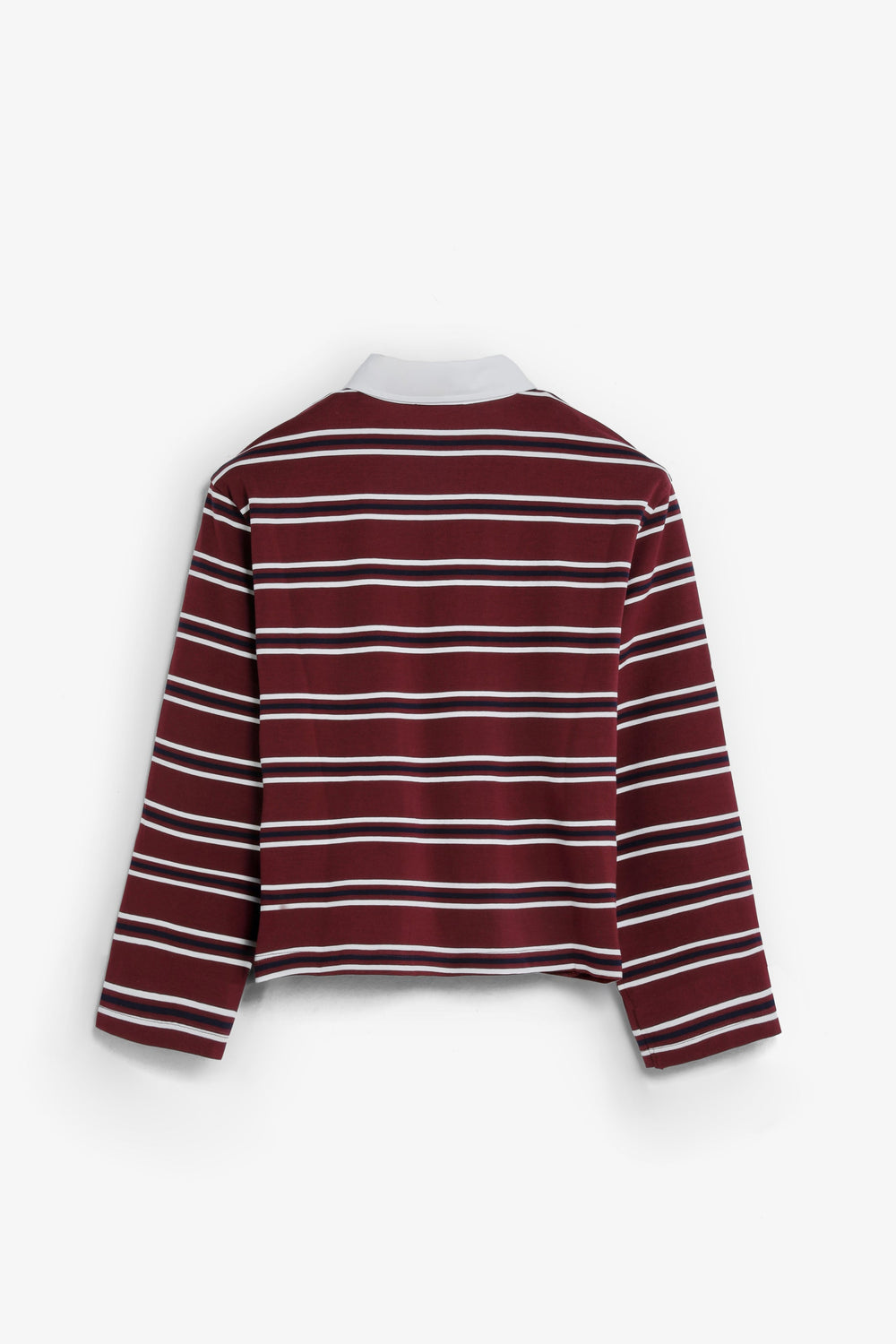 Polo shirt in 100% BCI cotton. Stripe print. Long sleeves. Contrasting collar. Button fastening. Embroidered contrast logo on the chest.