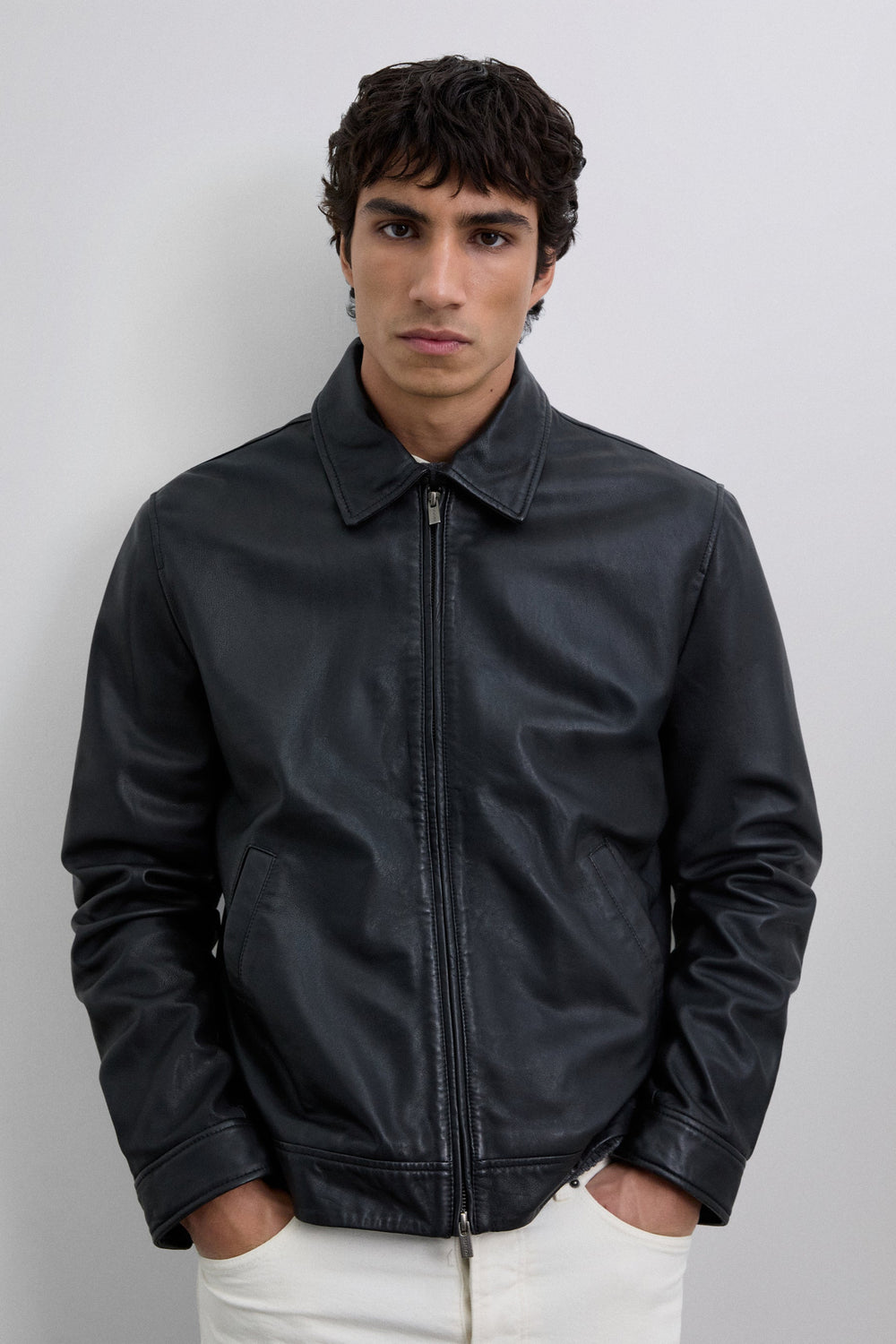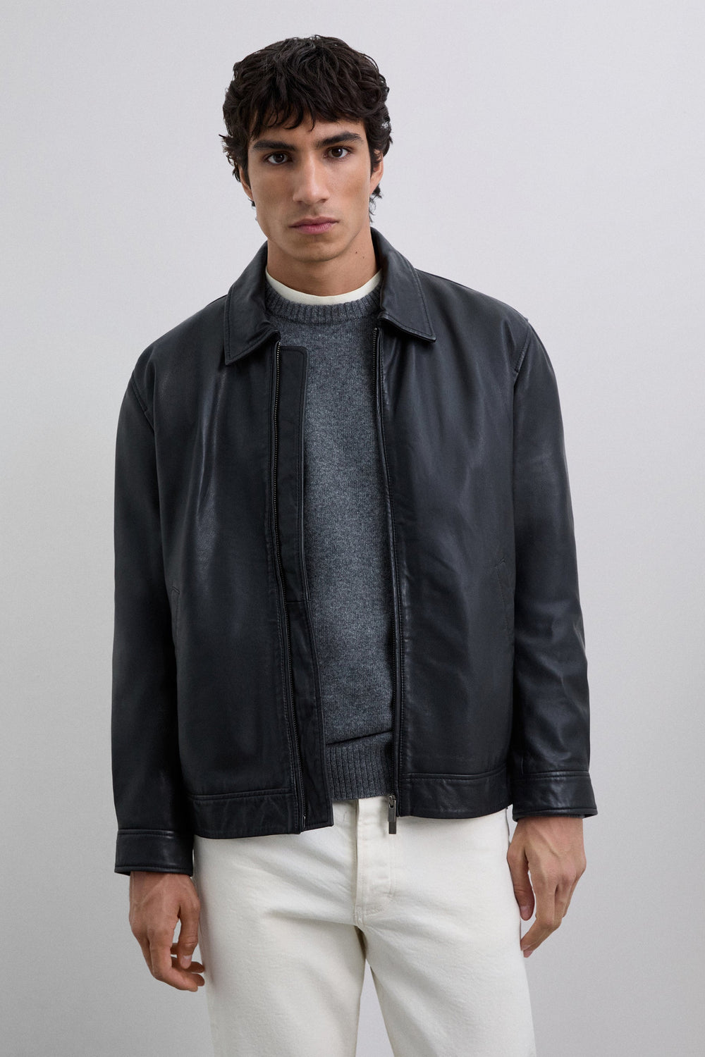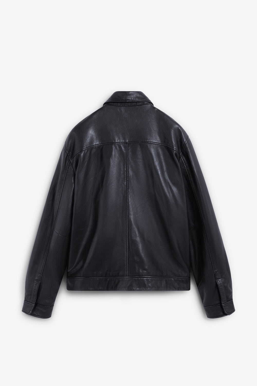 Jack gemaakt van 100% leer. Overhemdkraag. Lange mouw. Dubbele ritssluiting. Twee zakken aan de voorkant. Manchetten met knoop. Geborduurd logo en doodshoofd aan de binnenkant.
