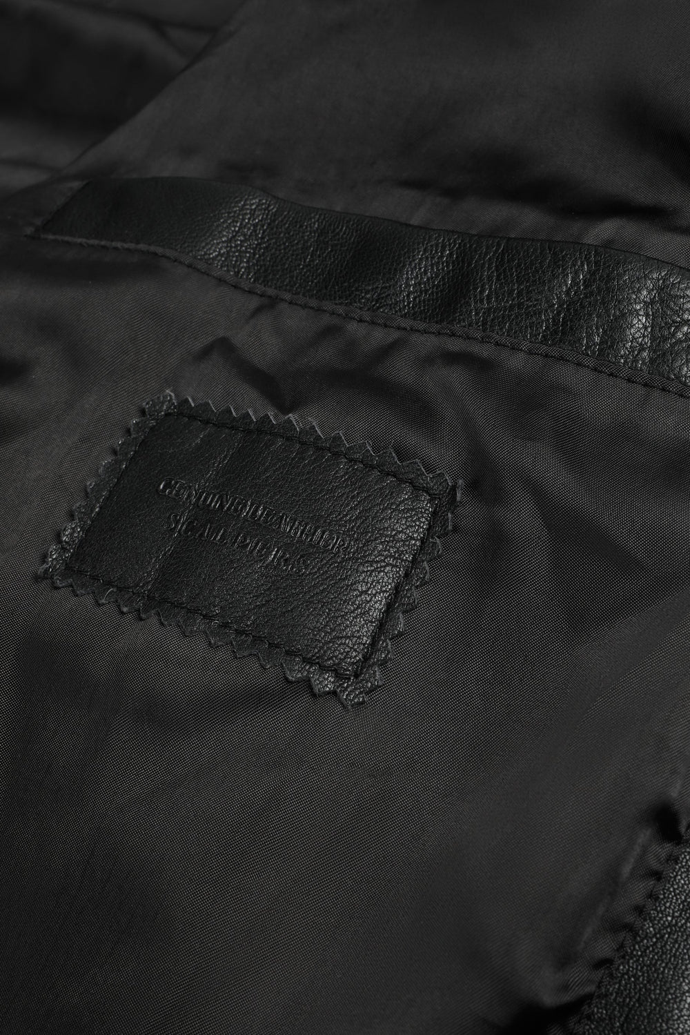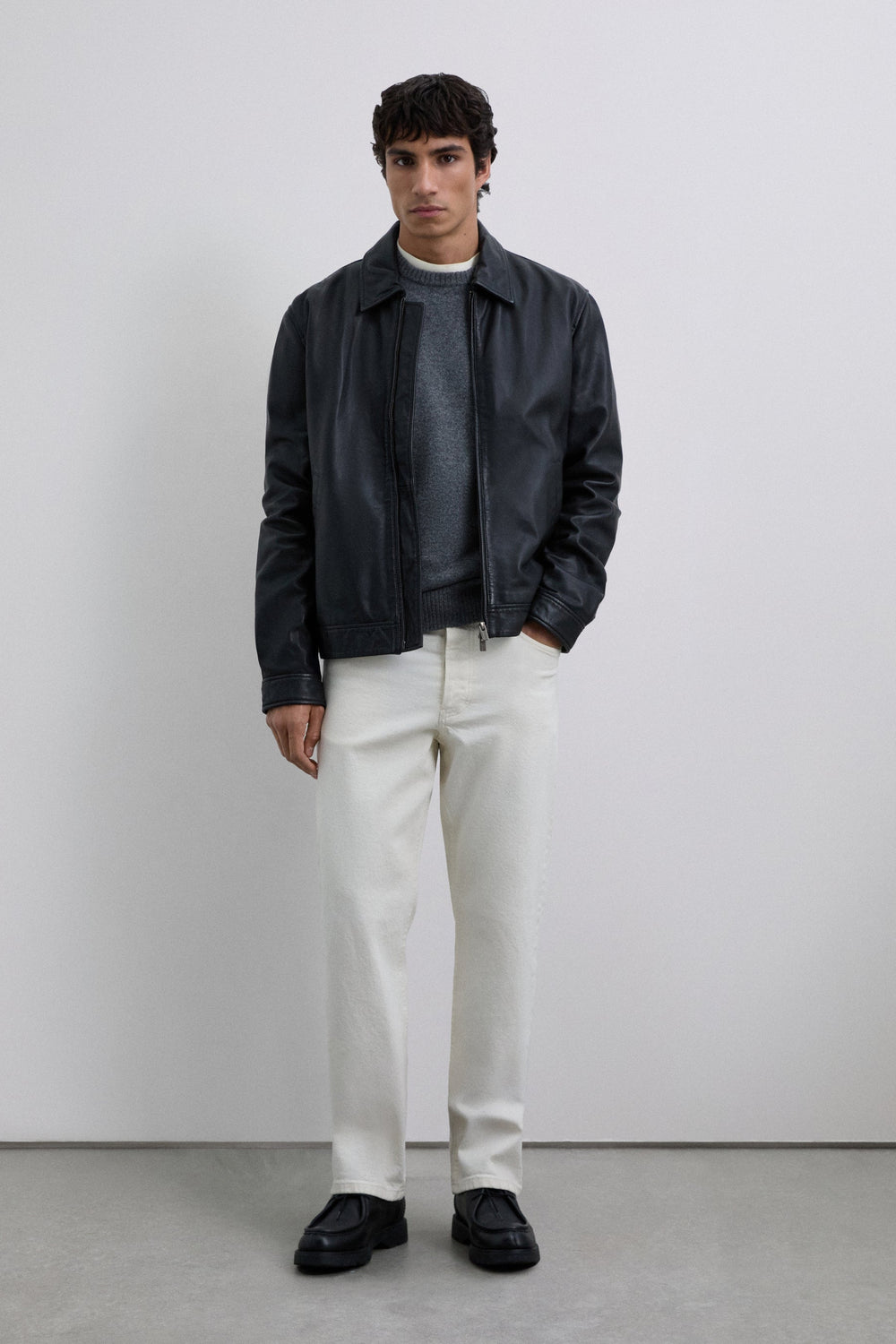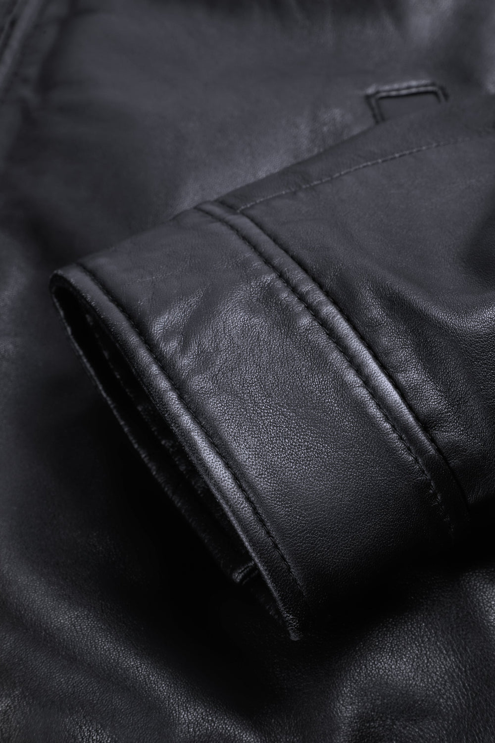 Jack gemaakt van 100% leer. Overhemdkraag. Lange mouw. Dubbele ritssluiting. Twee zakken aan de voorkant. Manchetten met knoop. Geborduurd logo en doodshoofd aan de binnenkant.