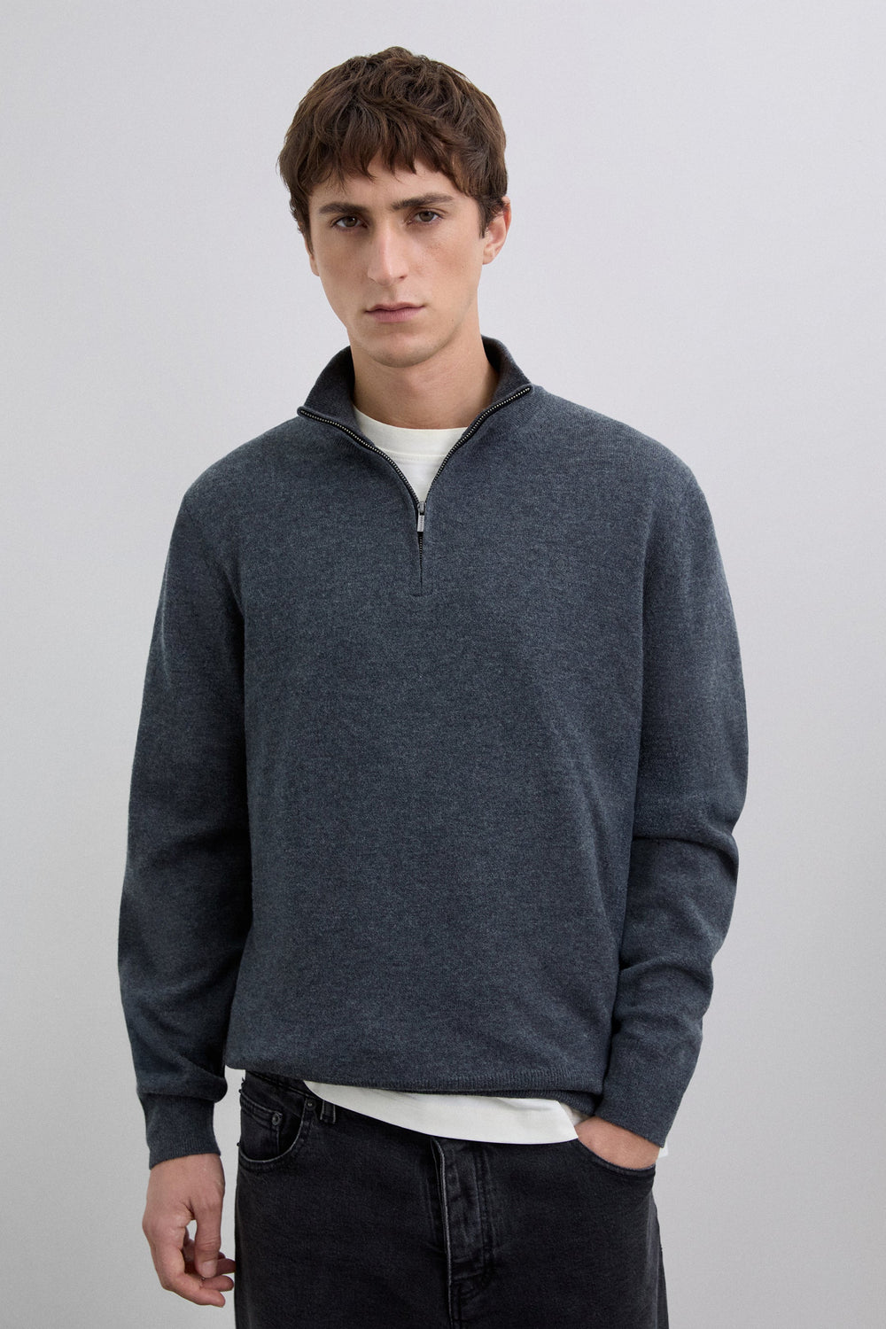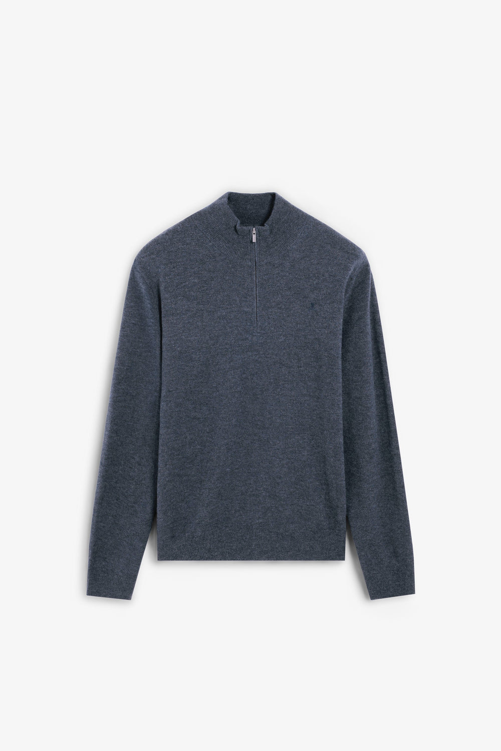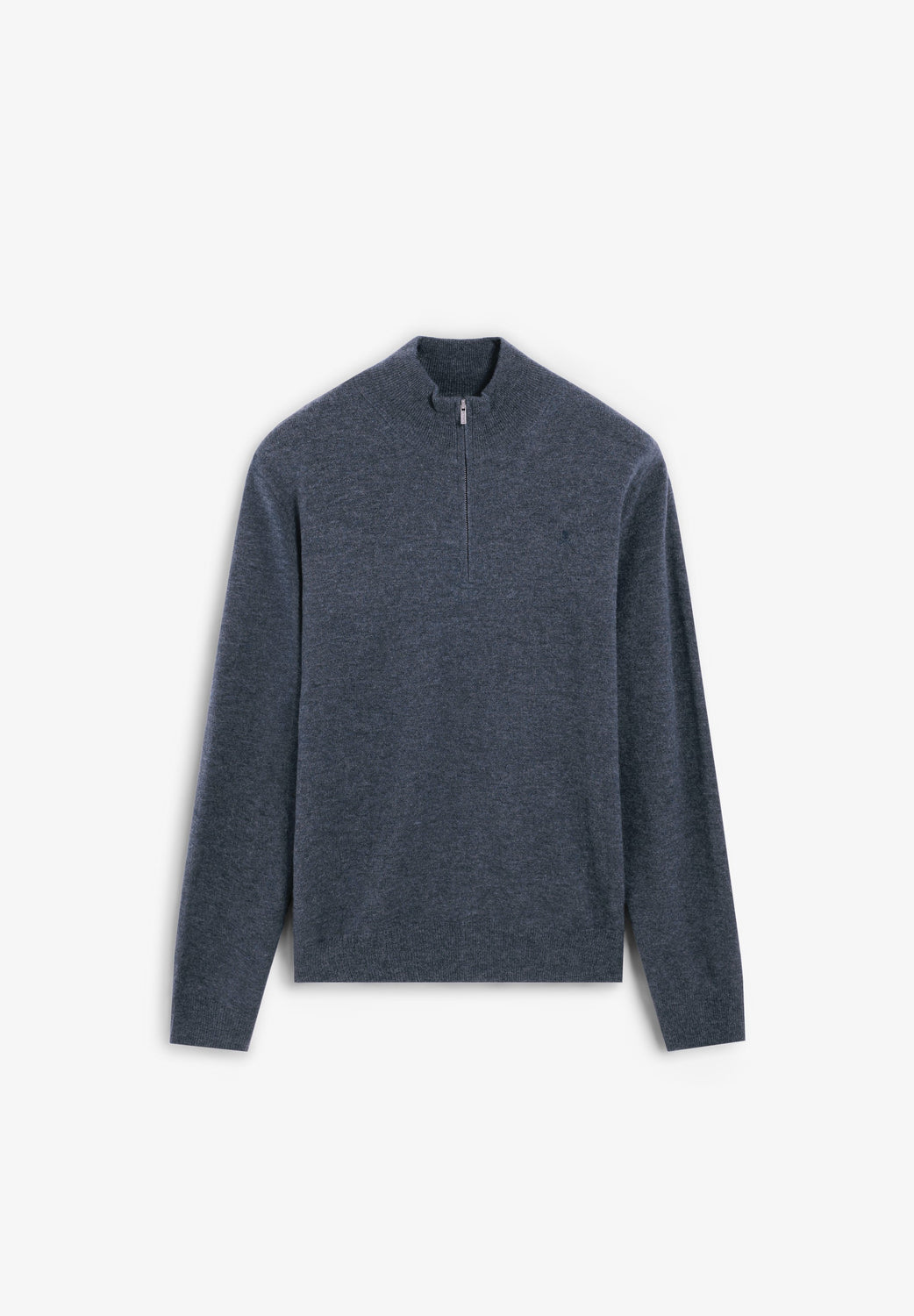 Sweater made of 100% merino wool. Regular Fit. Collar with half zip fastening. Long sleeves. Matching embroidered skull detail on the chest. Ribbed trim.