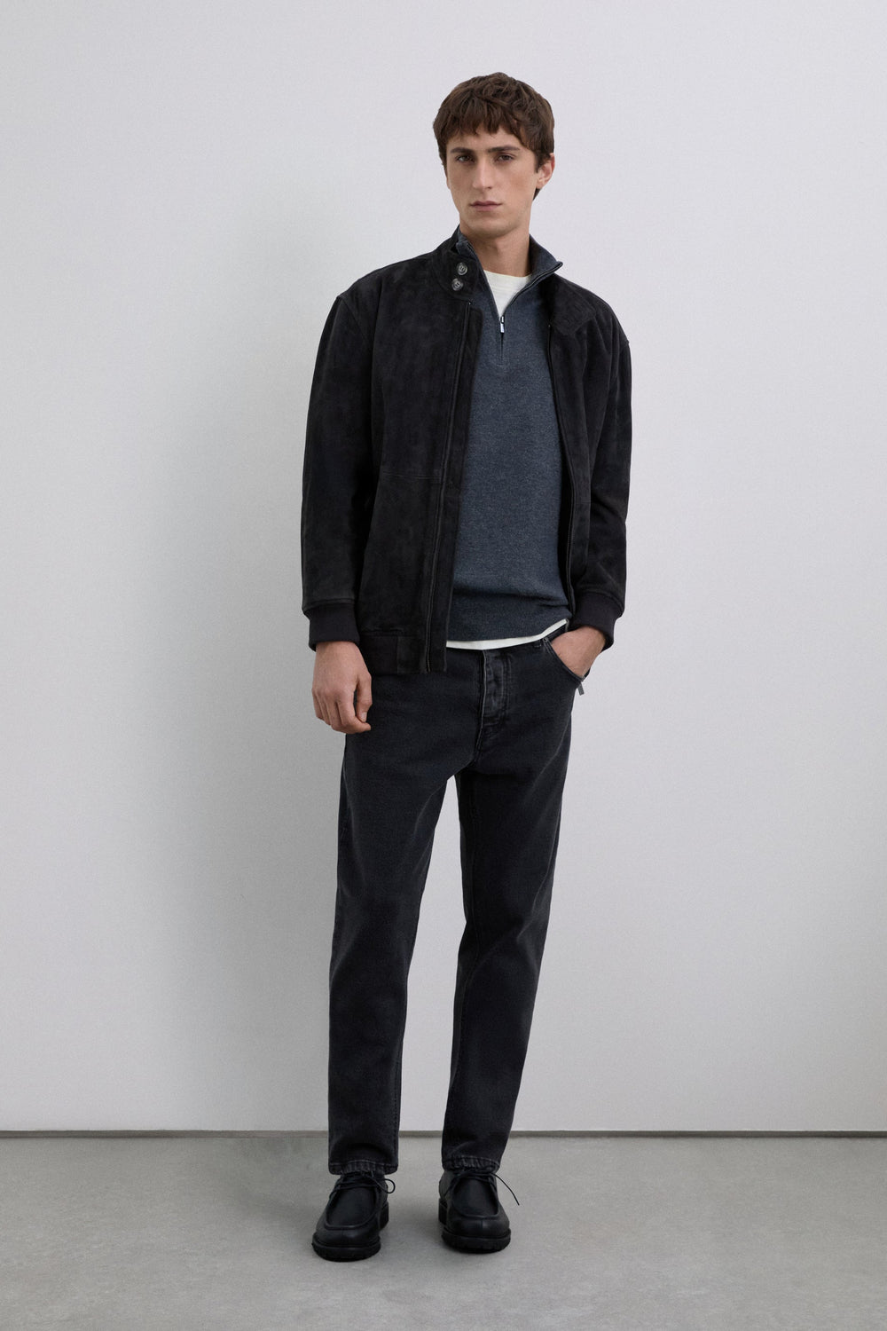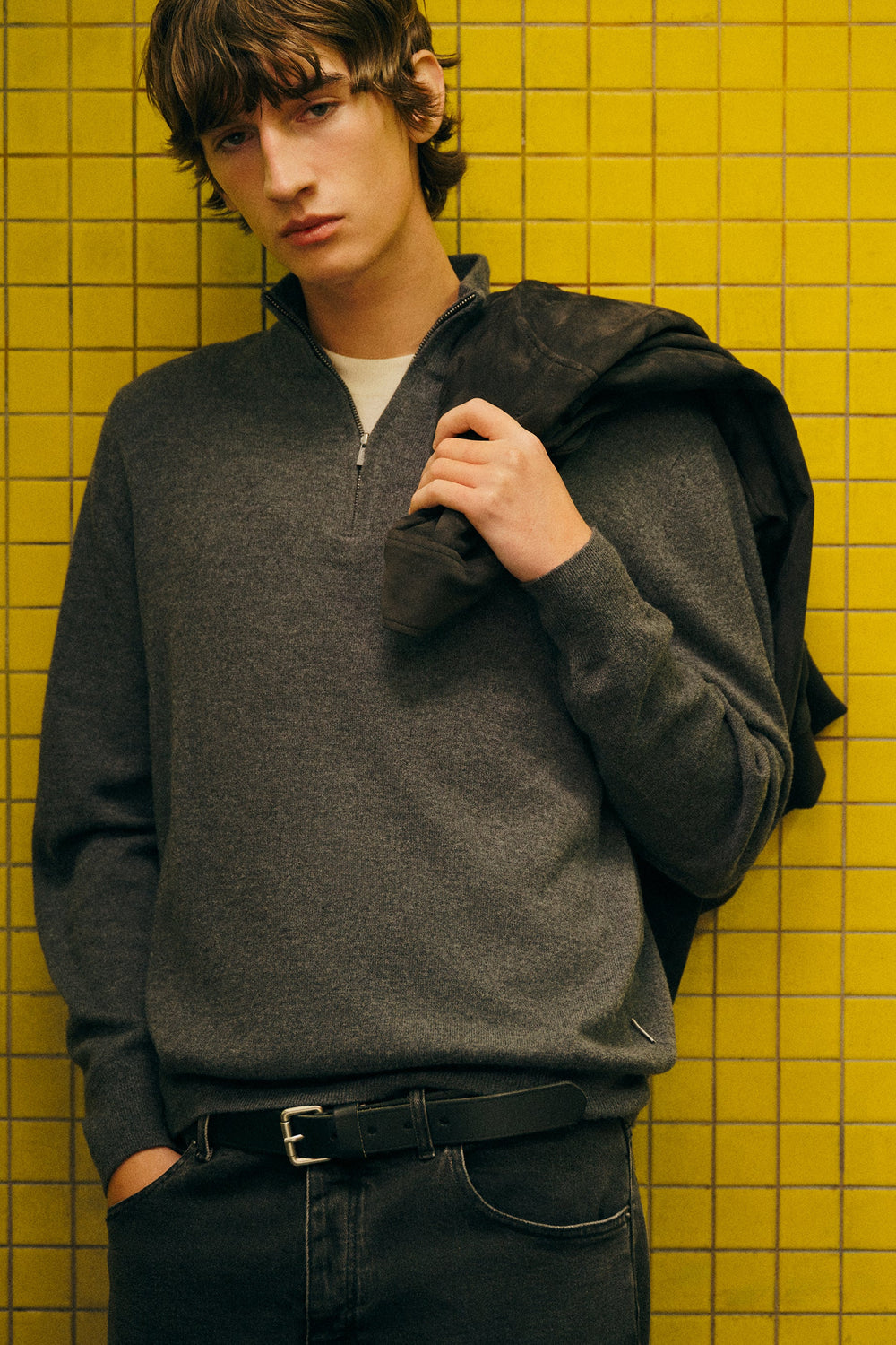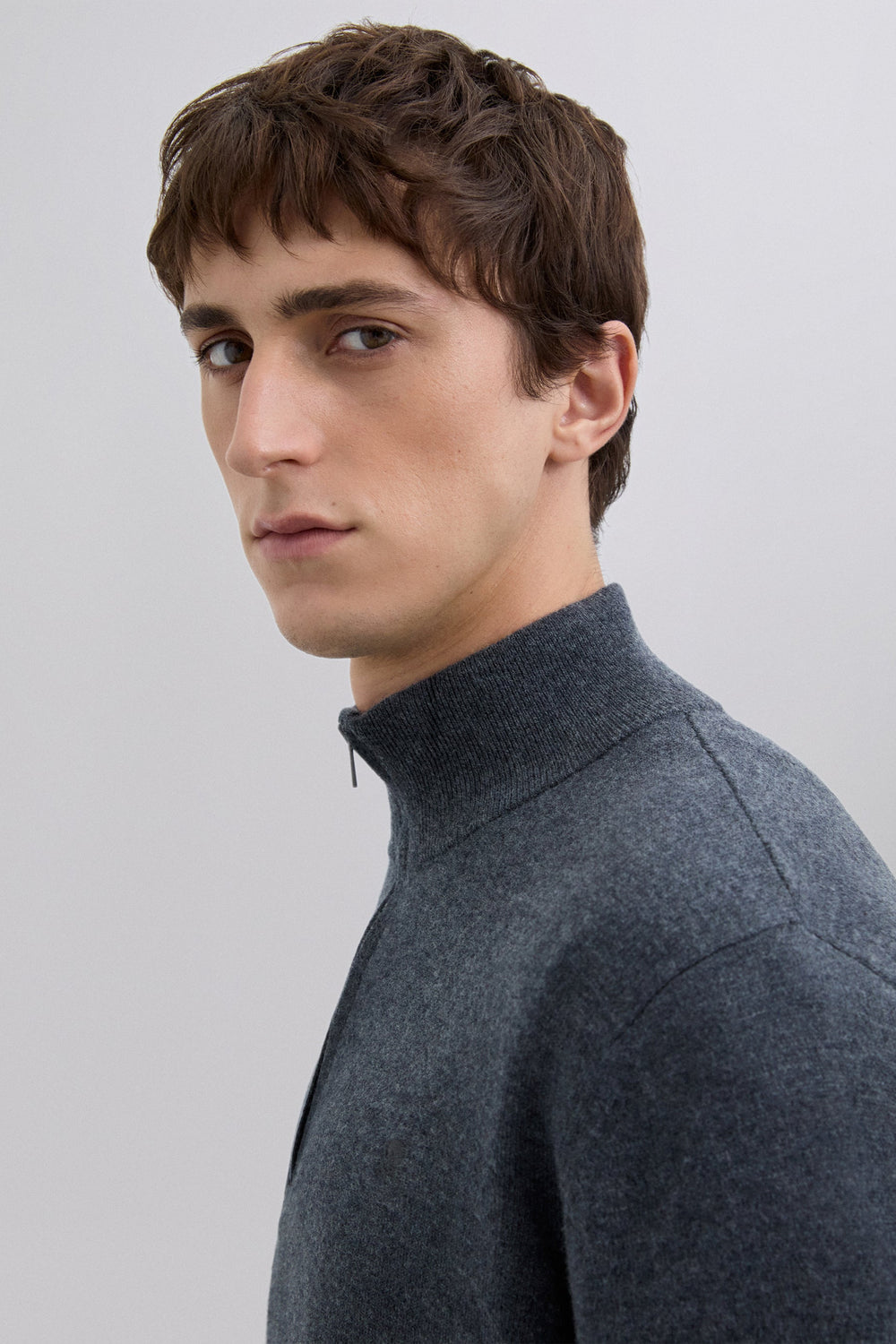 Sweater made of 100% merino wool. Regular Fit. Collar with half zip fastening. Long sleeves. Matching embroidered skull detail on the chest. Ribbed trim.
