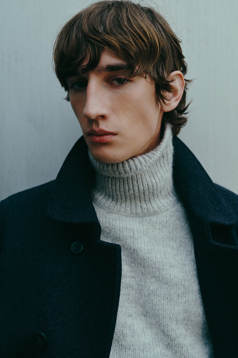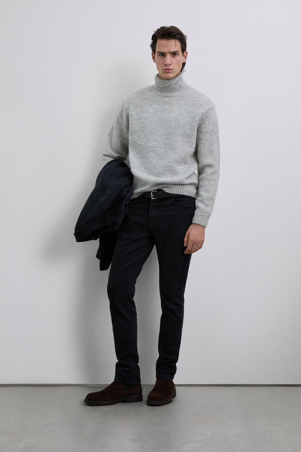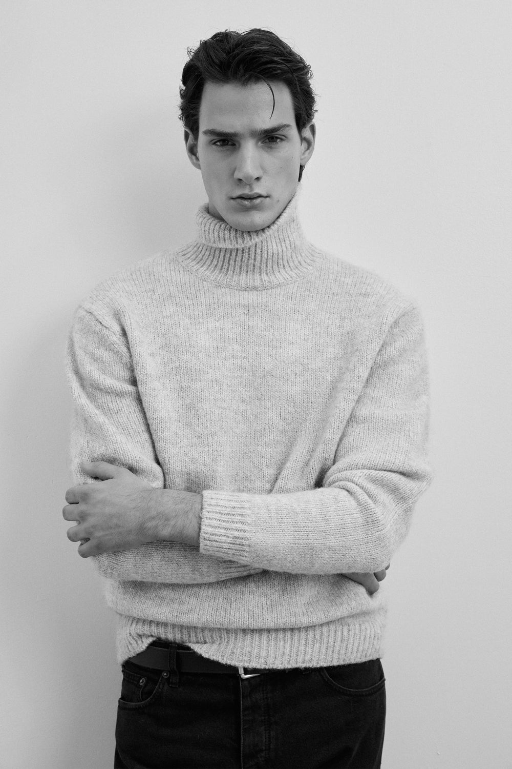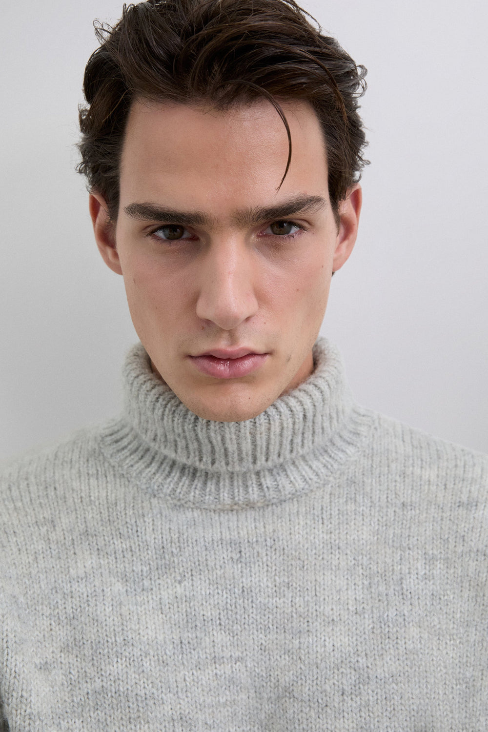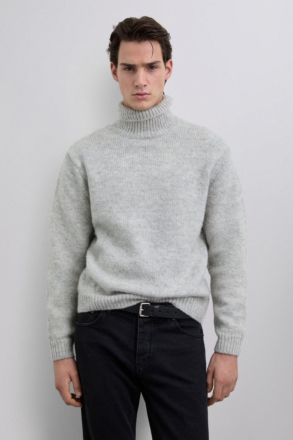Brushed wool blend sweater. High collar. Long sleeves. Regular fit.