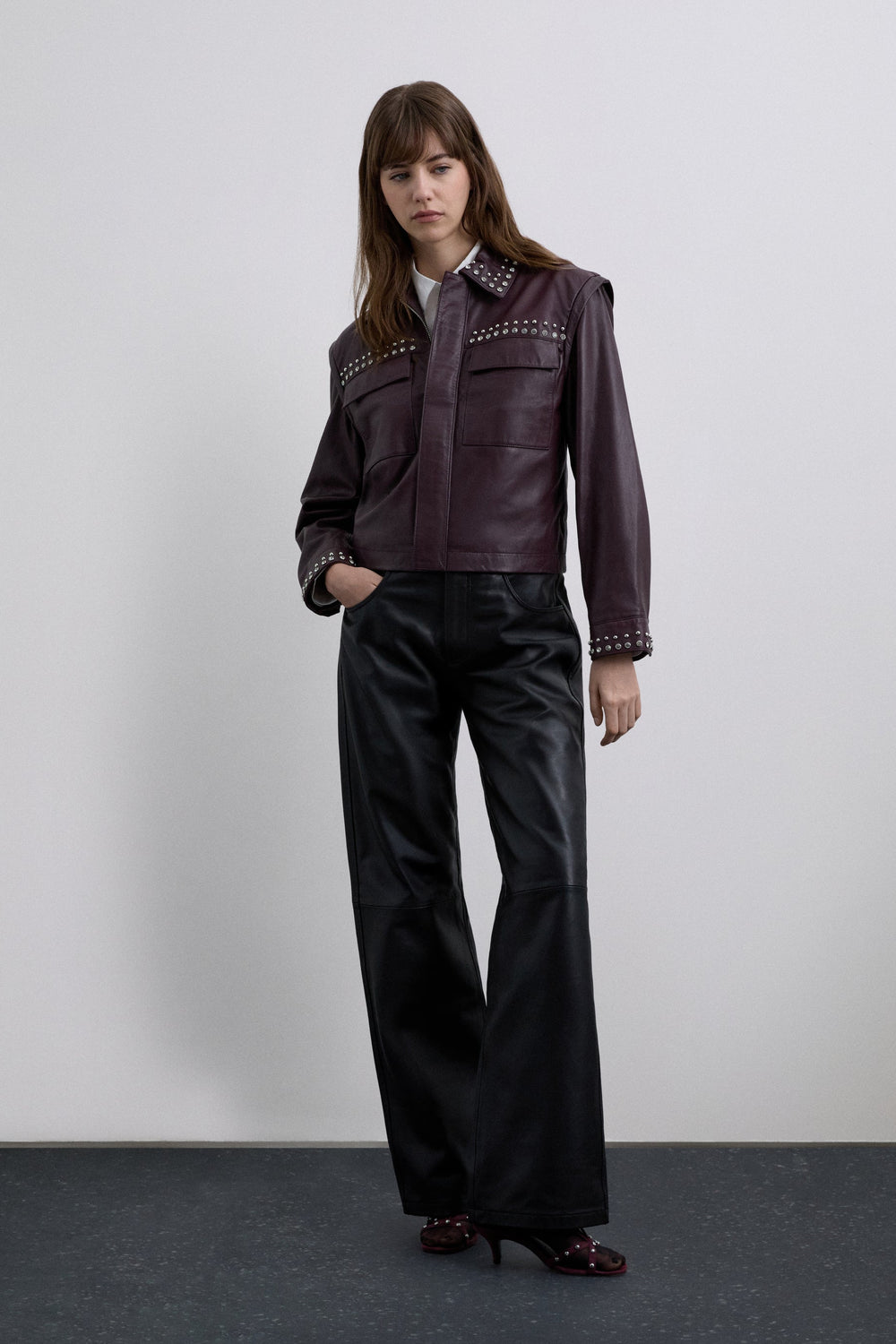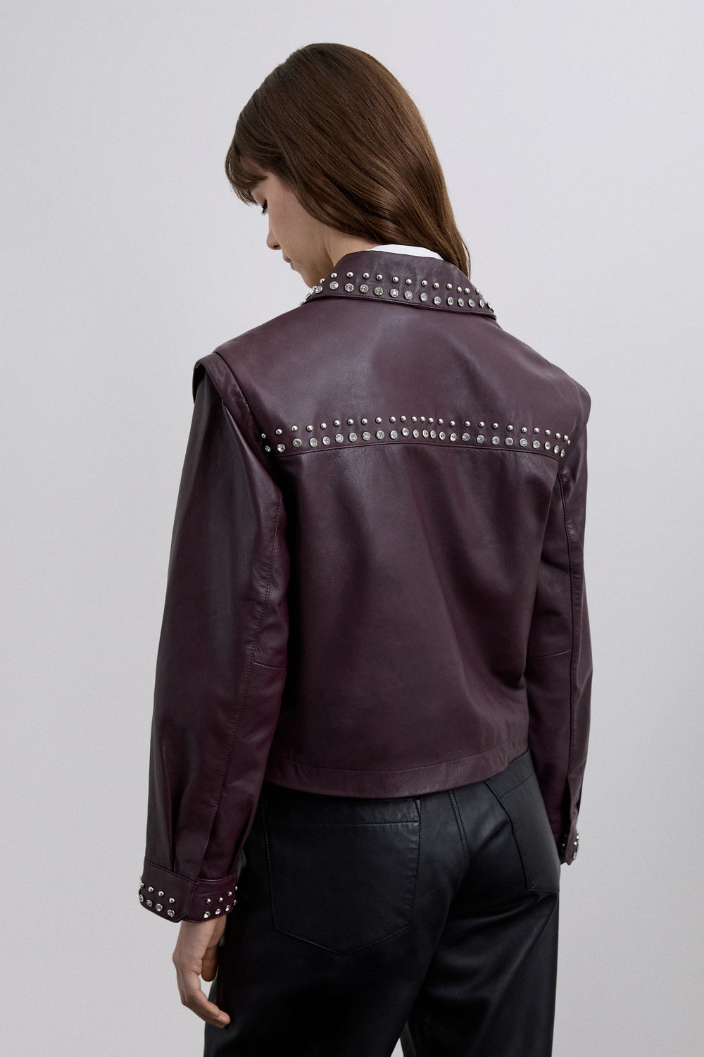 LEREN BORDEAUXROOD JASJE MET STUDS