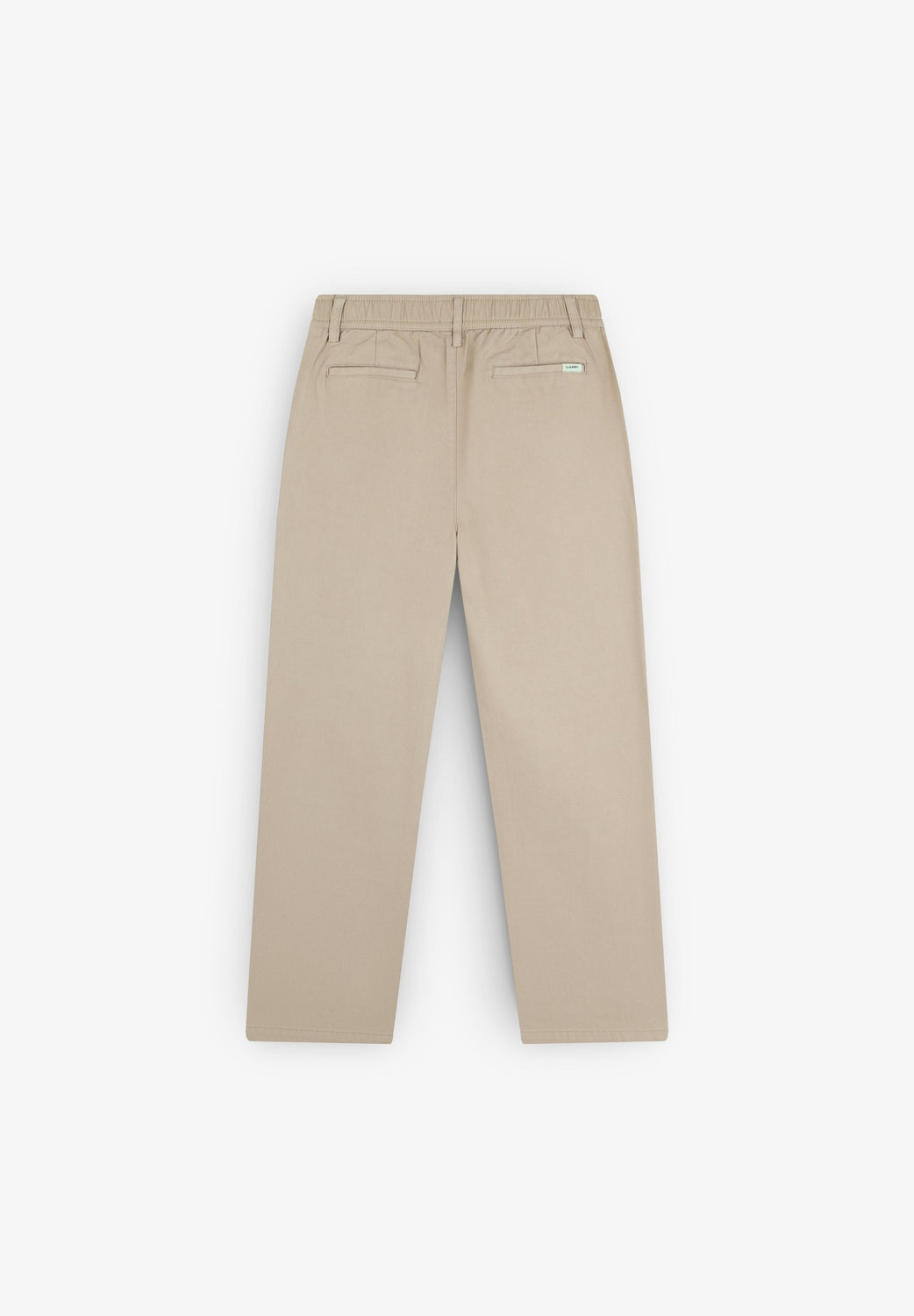 Chino broek gemaakt van 100% BCI-katoen. Twee voor- en achterzakken. Knoopsluiting en riemlussen in de taille. Label met logo op de zak.