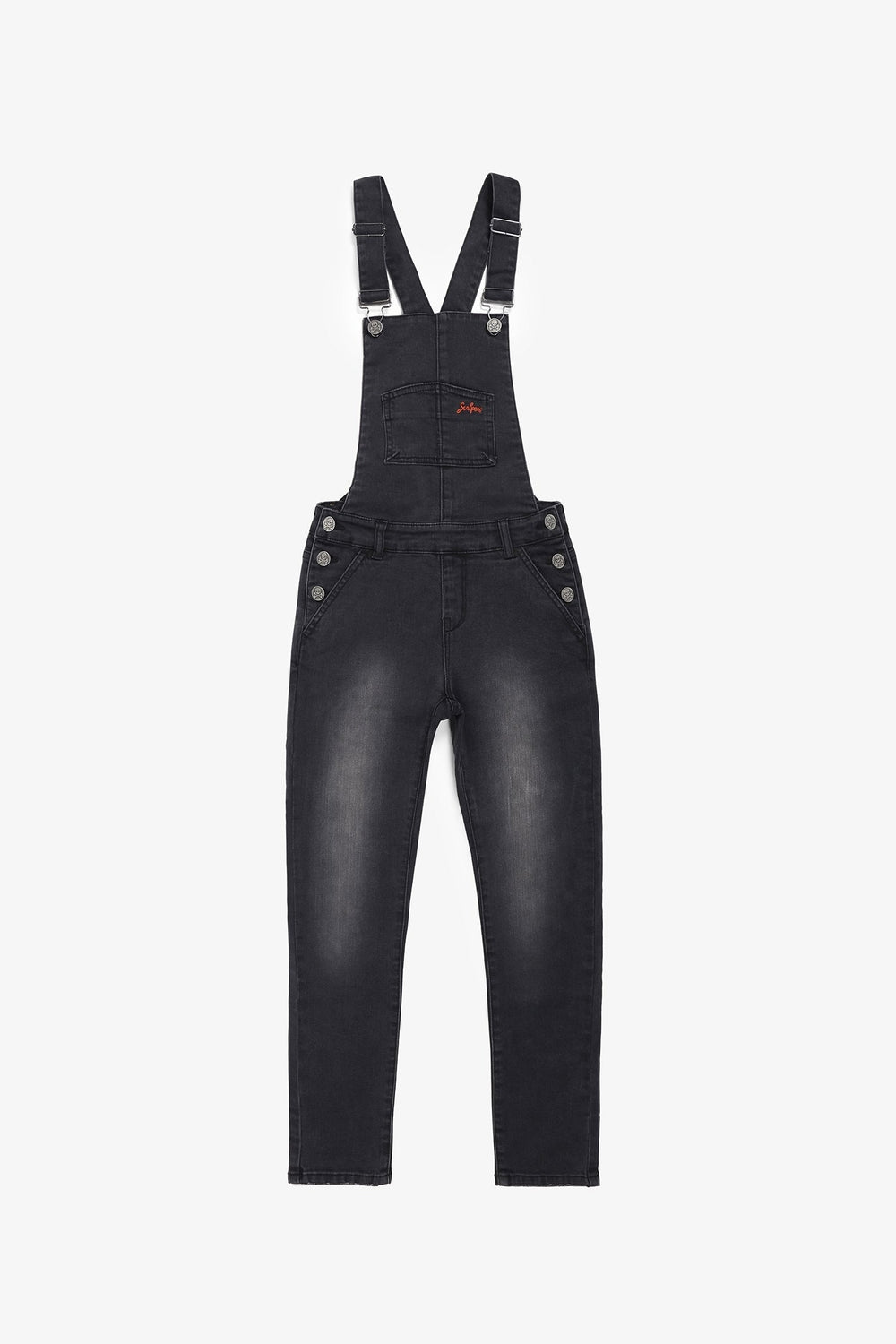 - Coupe slim fit bas coupe cigarette, fermeture boutonnée sur les côtés et bretelles réglables.