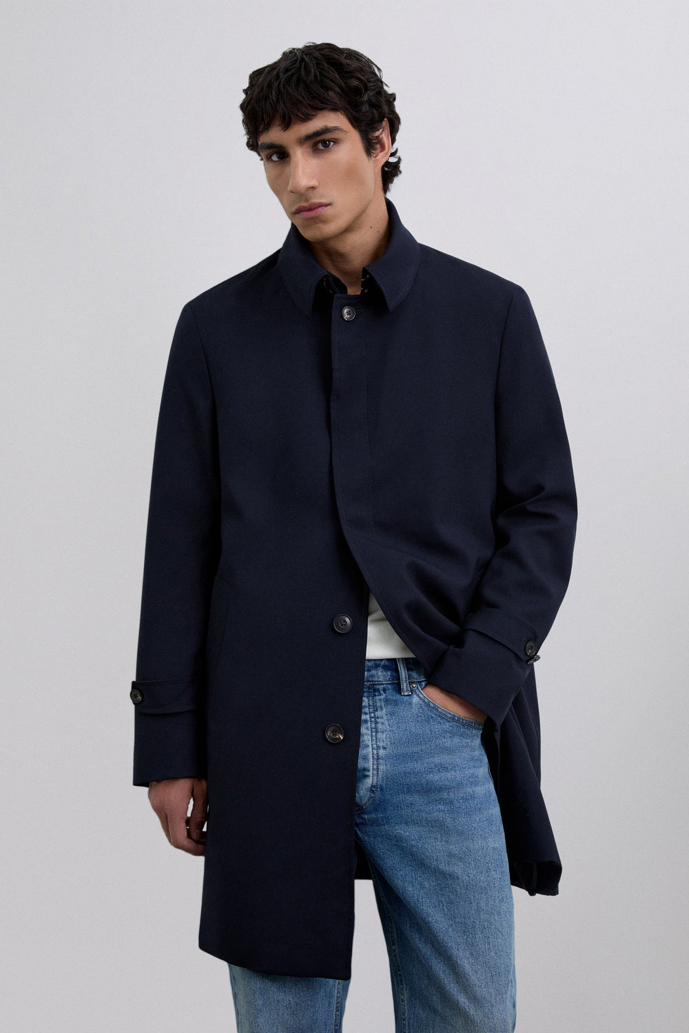 Trench coat made of 100% leather. Concealed button fastening. Adjustable buttoned cuffs. Shirt collar.