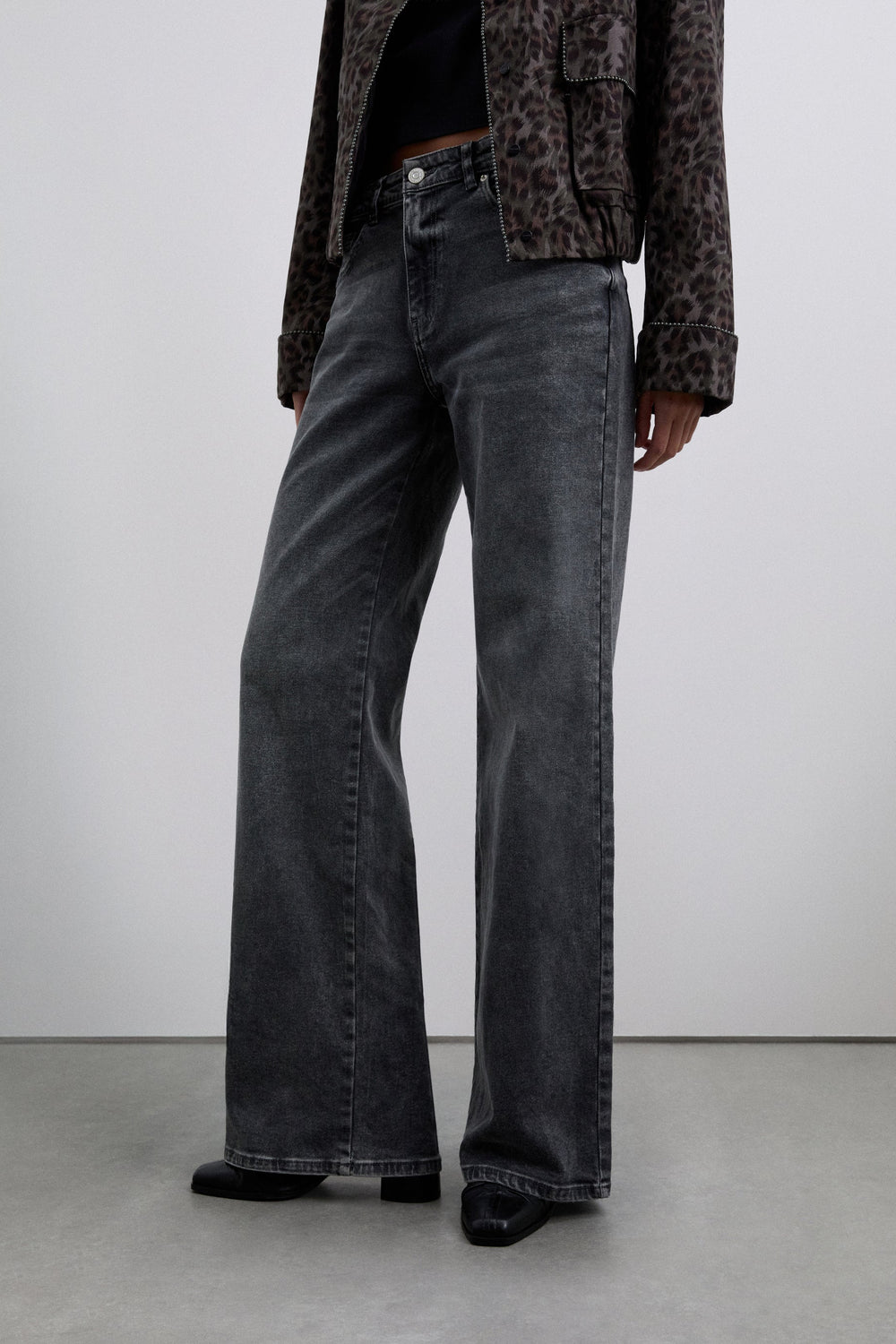 Jeans made of a 100% slightly stretch cotton fabric. Regular fit, full length. Mid-rise with zip and button fastening. Belt loops at the waist. Front and back pockets.