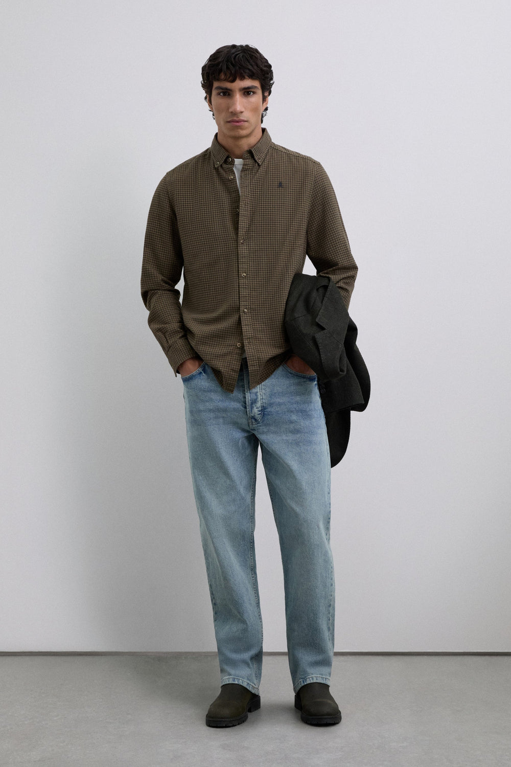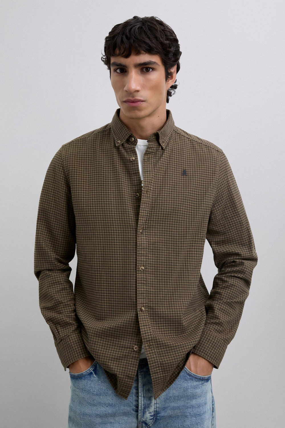 Shirt made of 100% cotton. Regular fit. Buttoned collar. Long sleeves. Buttoned cuffs. Contrast embroidered logo detail on the chest.