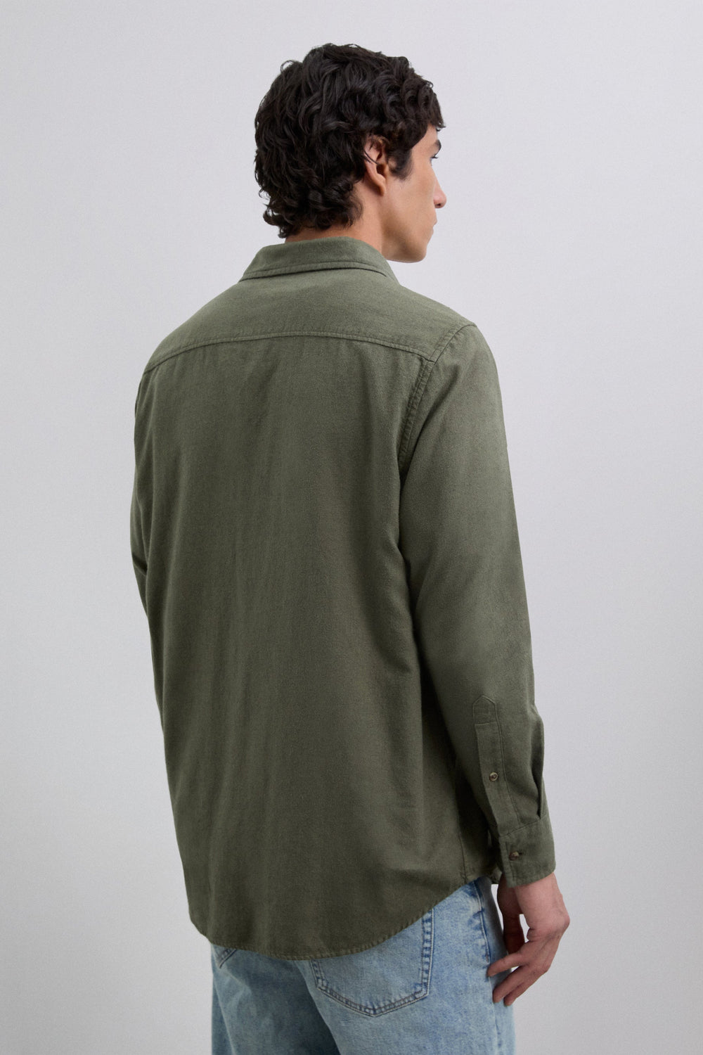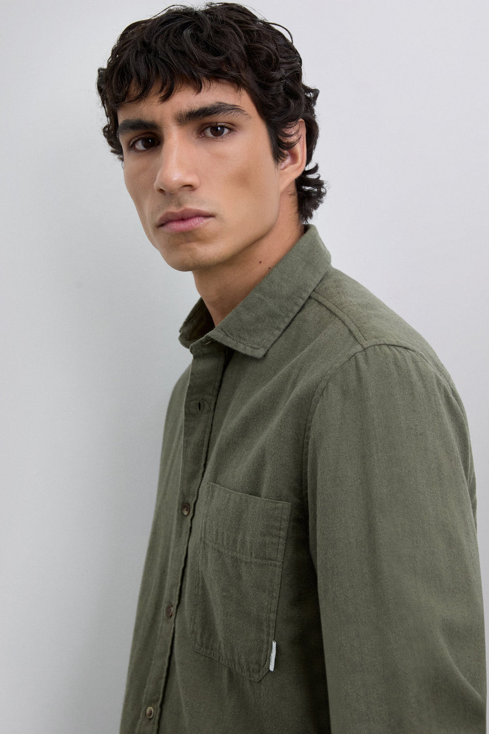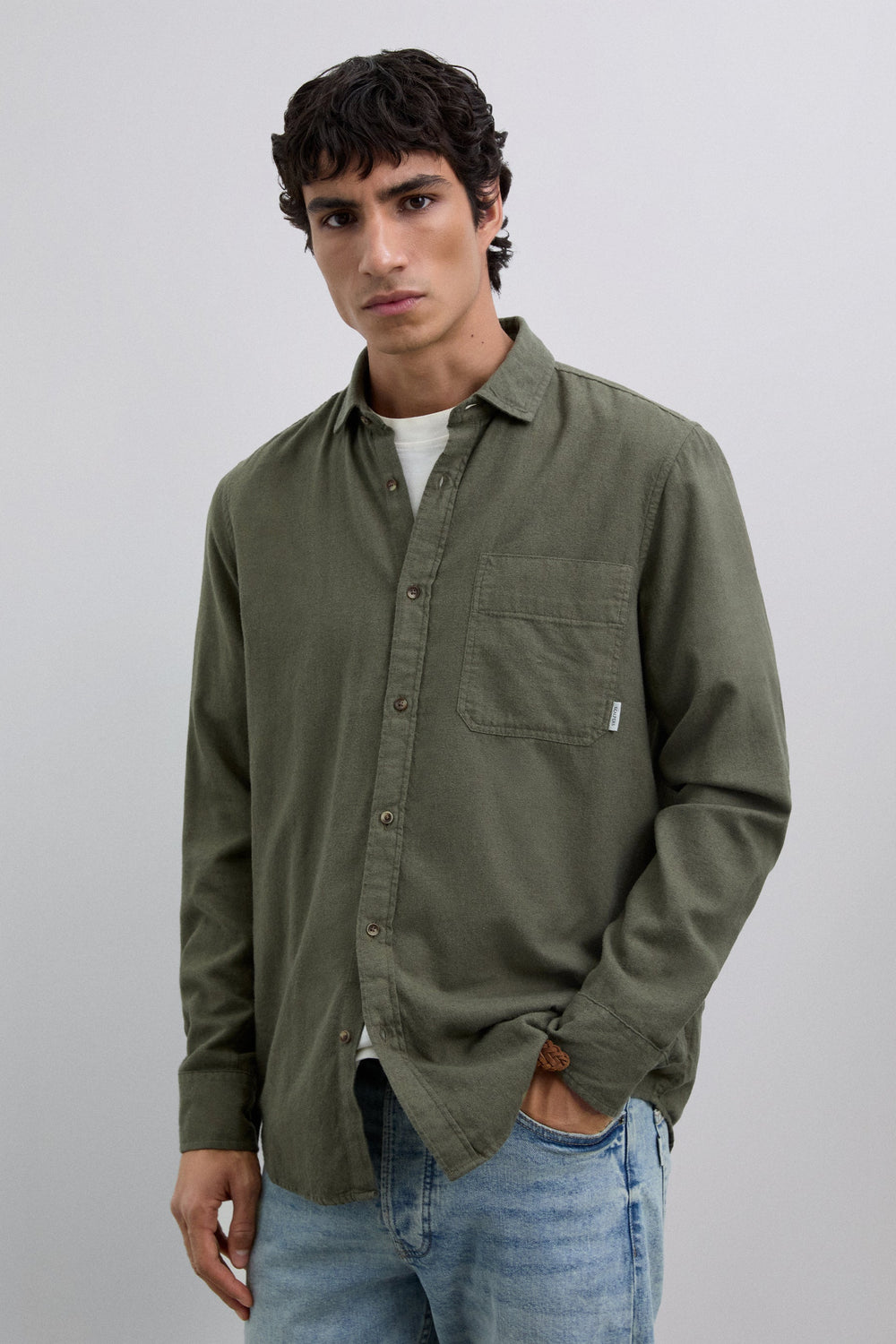 Overshirt made of 100% BCI cotton. Regular fit. Buttoned collar. Long sleeves. Buttoned cuffs. Chest pocket. Contrast label detail.