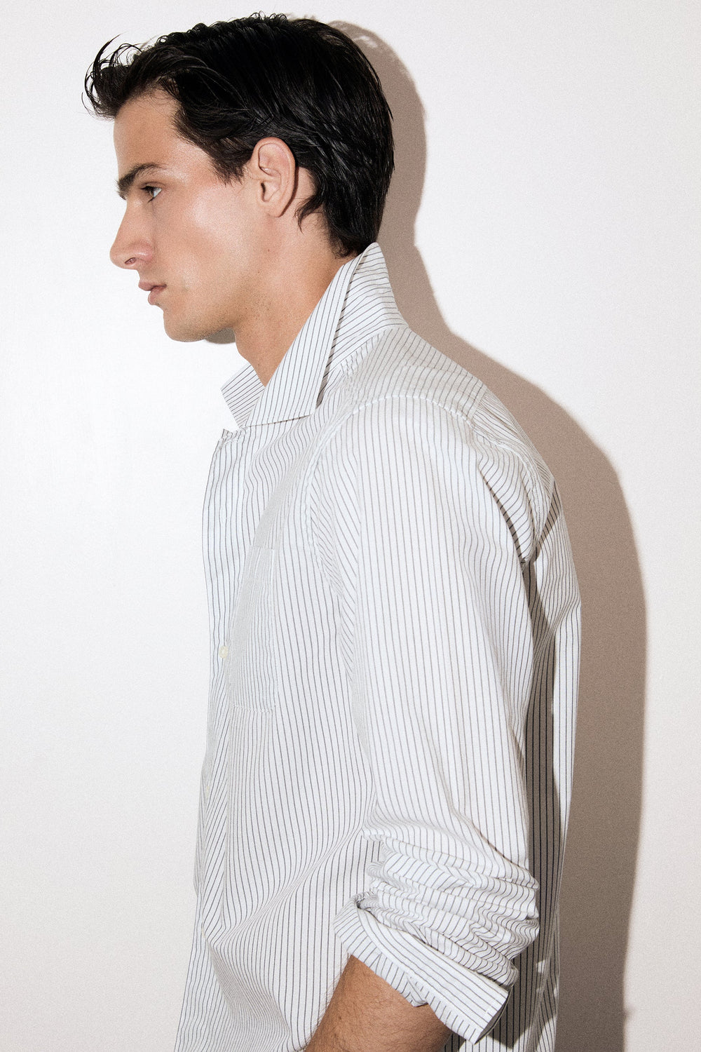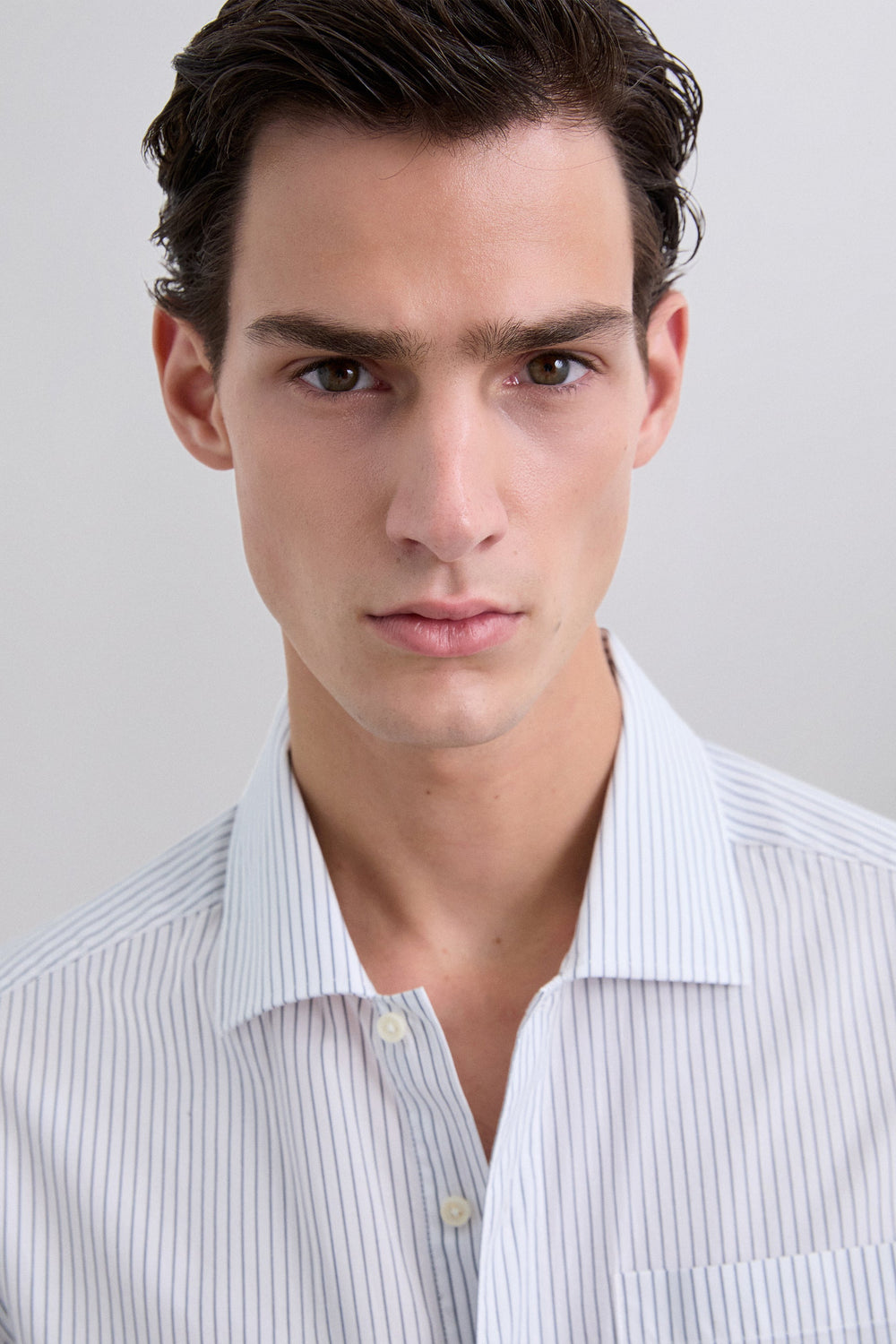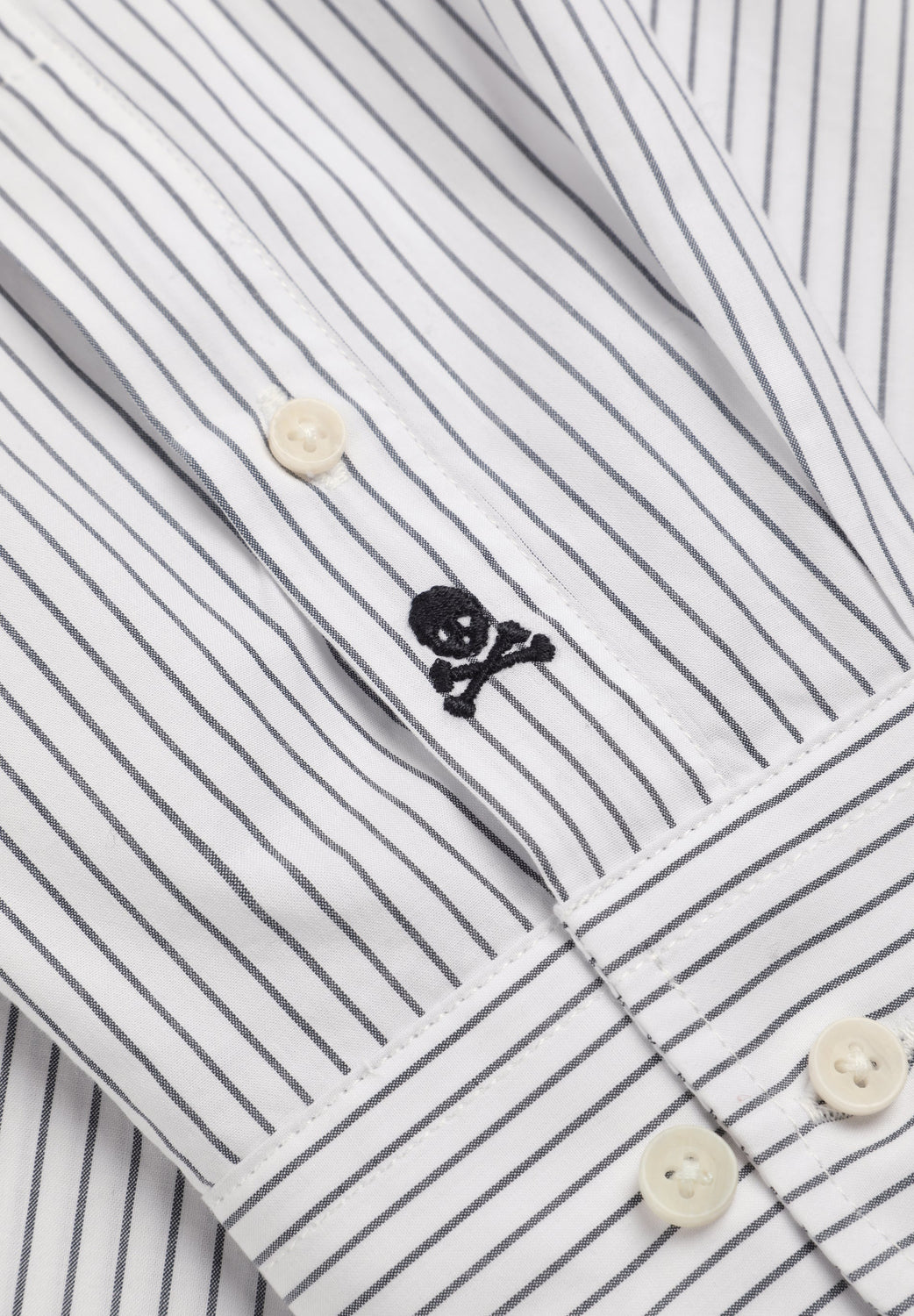 Shirt made of 100% organic cotton. Long sleeves with buttoned cuffs. Shirt collar. Front button fastening. Stripe print. Chest pocket. Embroidered logo on the cuffs.