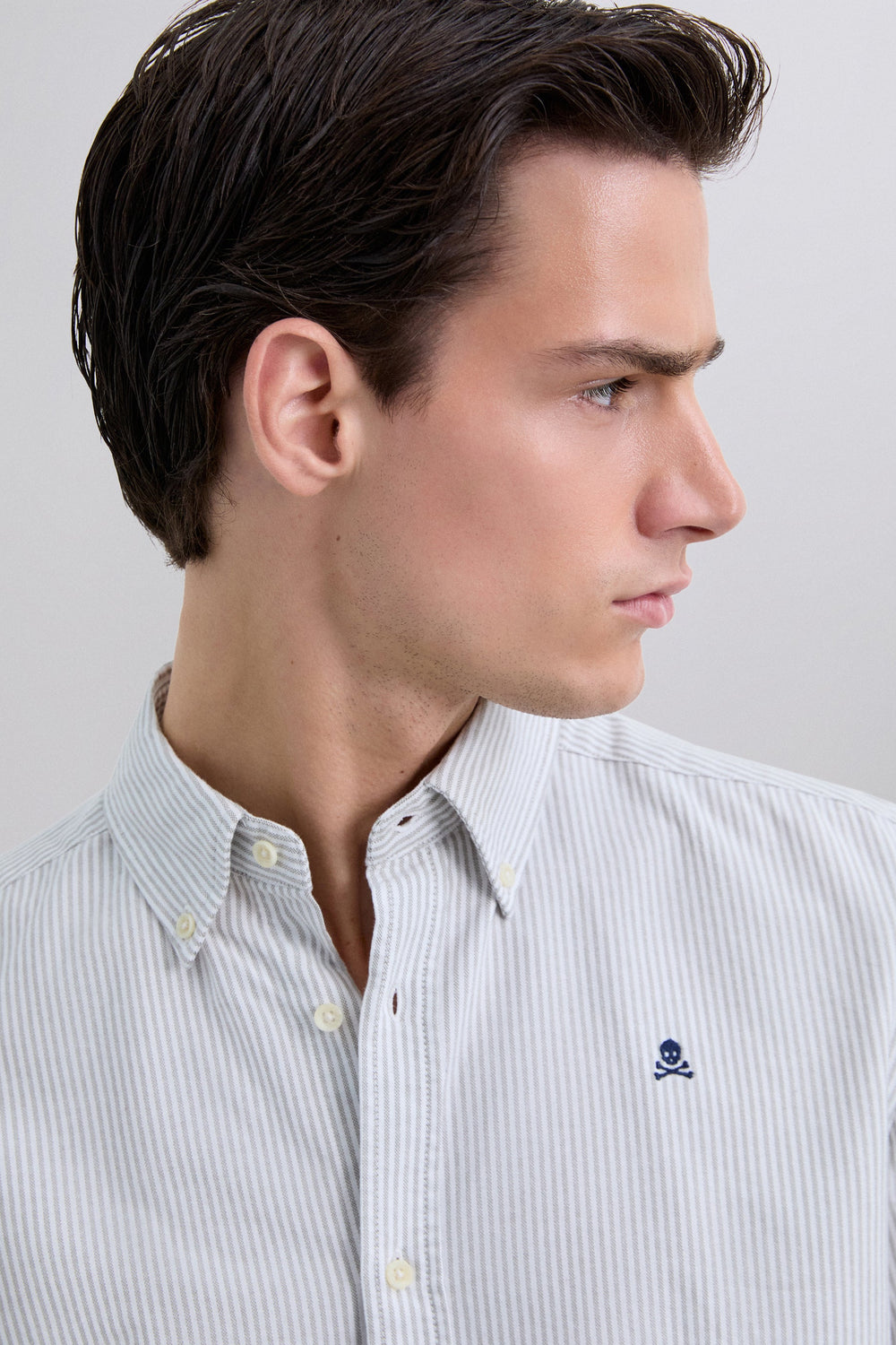 Striped shirt made of 100% BCI cotton. Classic collar, button fastening, regular fit, contrast skull on chest. Buttoned cuffs.