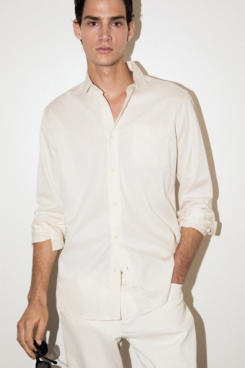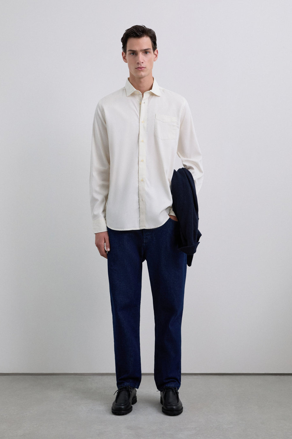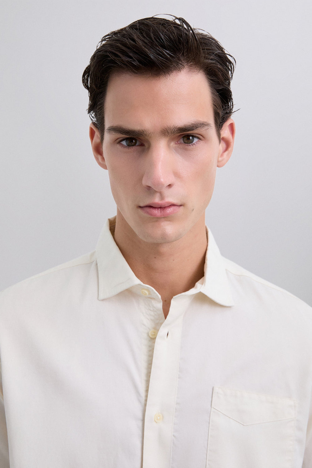 Shirt with matching embroidered skull on the front. Regular fit. Buttoned collar. Long sleeves with buttoned cuffs. Front button fastening. Patch pocket on the chest.