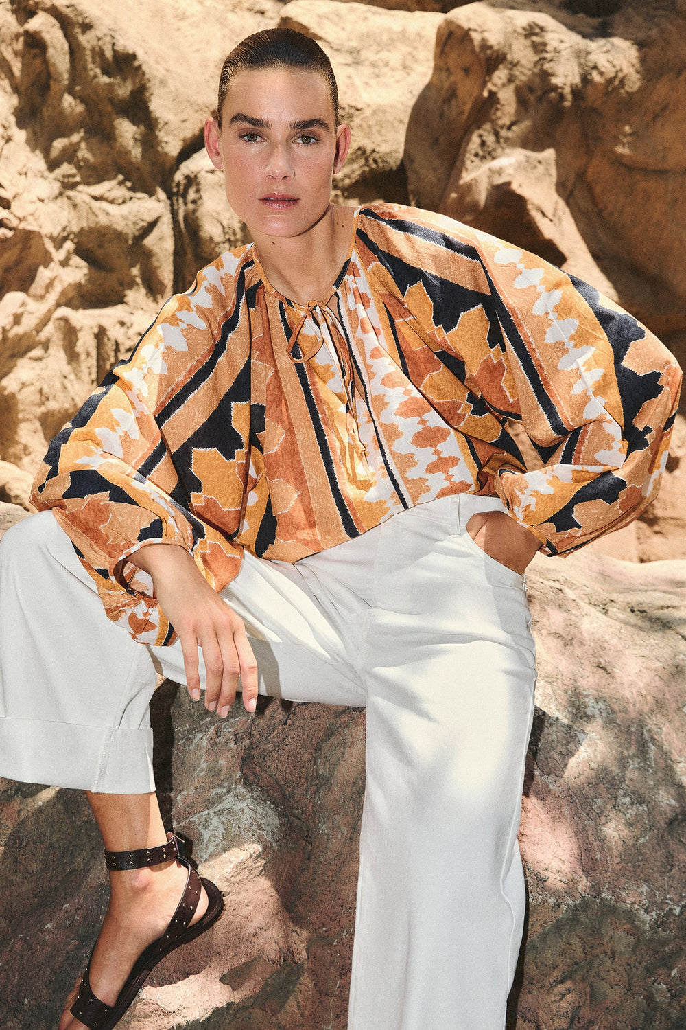 ETHNIC PUFF SLEEVE SHIRT