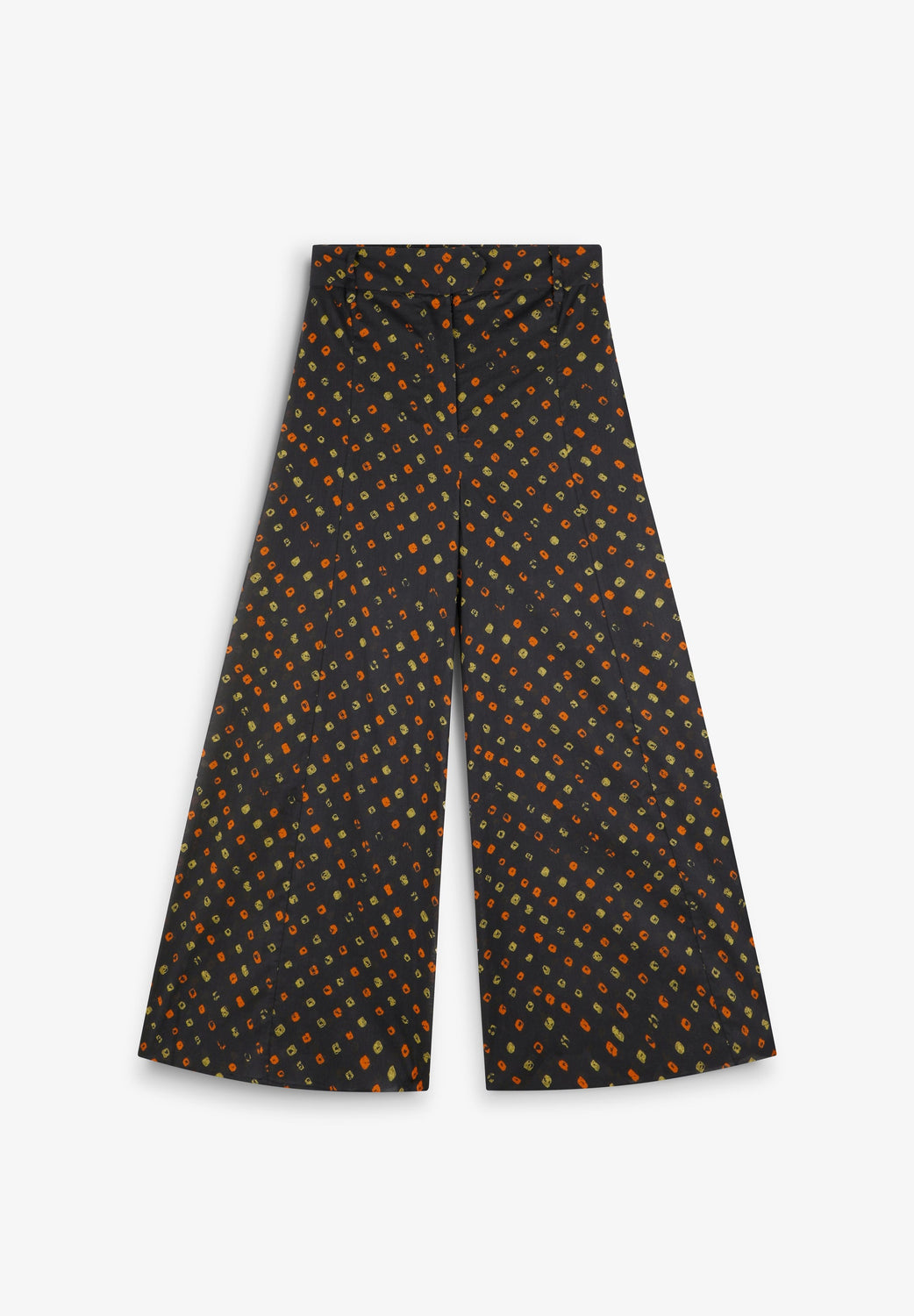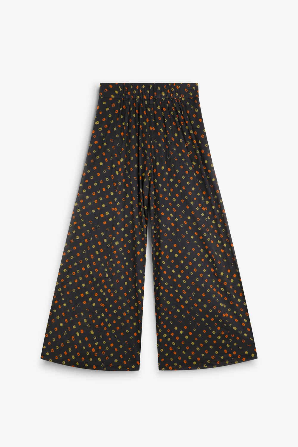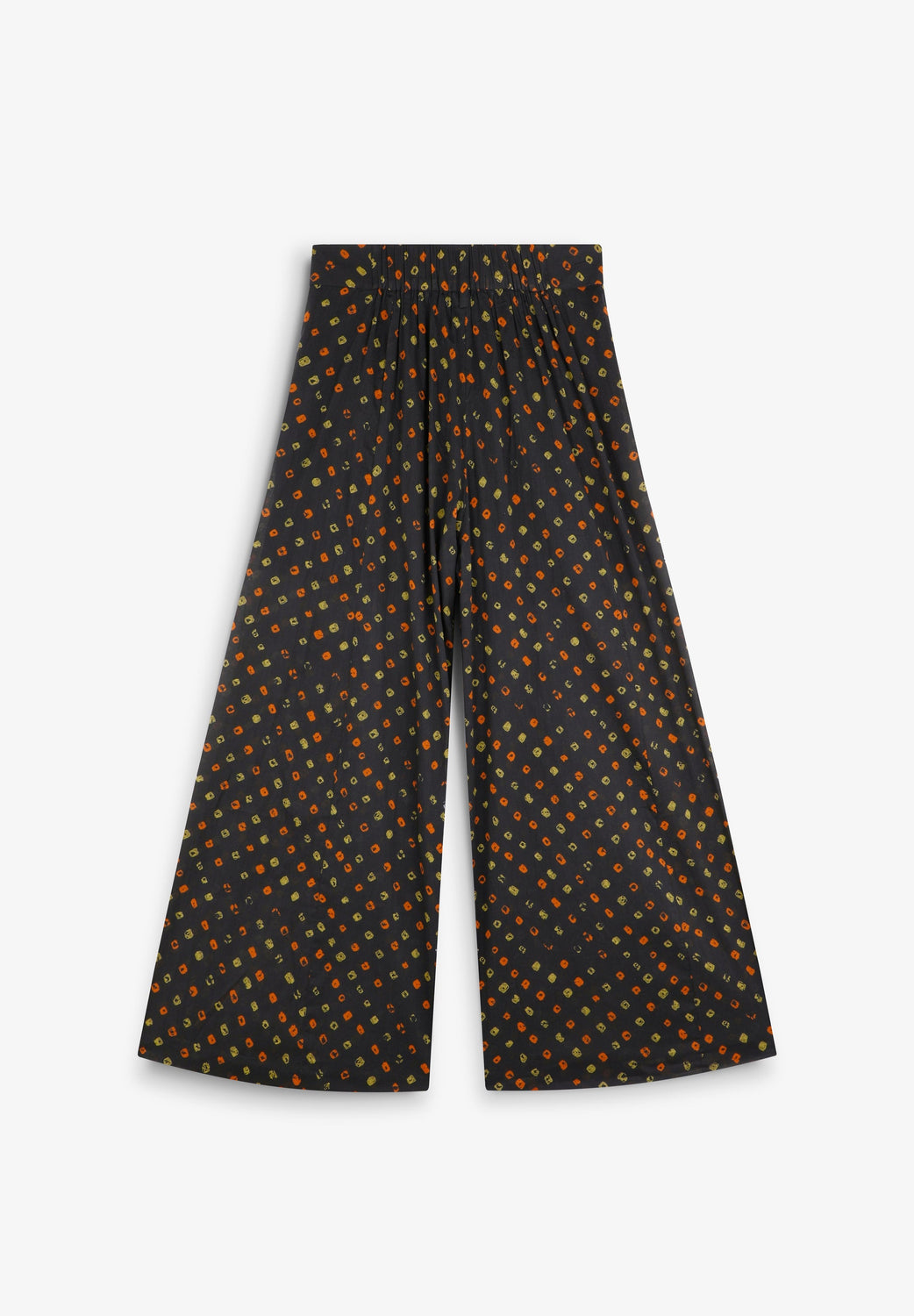 Jeans made of 100% organic BCI cotton. Culotte fit. Printed. Front zip and button fastening. Elasticated back waistband.