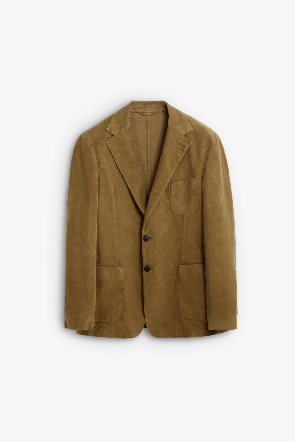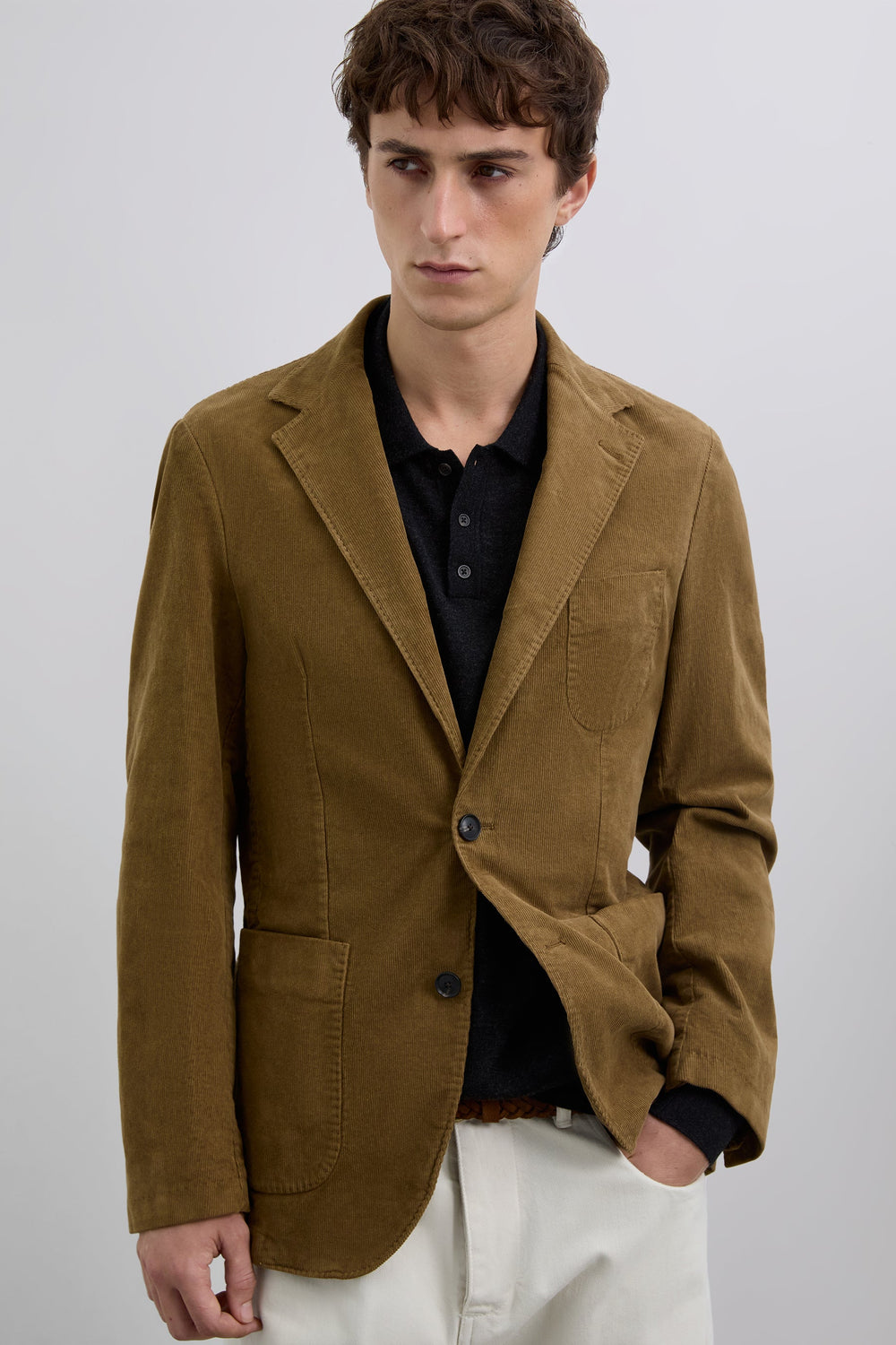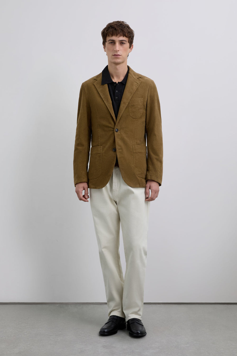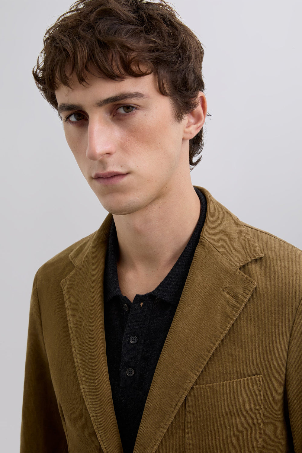 Blazer made of slightly stretchy corduroy fabric. Regular fit. Notched lapel collar. Button fastening. Sleeves with buttoned cuffs. Patch pockets.