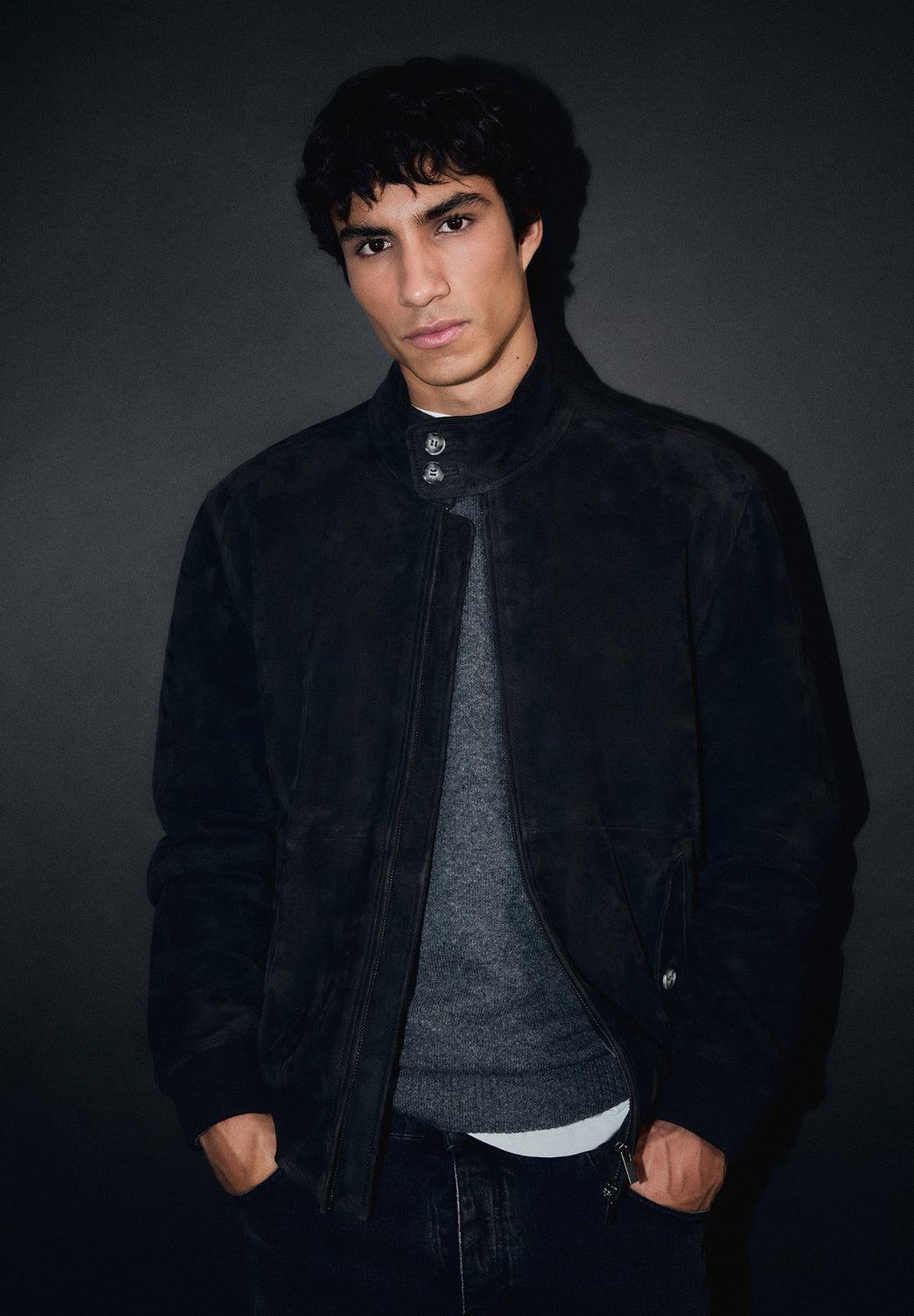 Jacket made of 100% goatskin. Double slider zip. Ribbed cuffs and waist. Two side pockets with button fastening. Two button fastening collar.