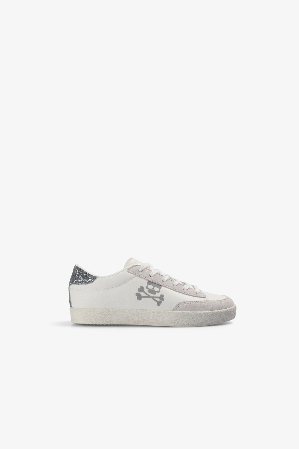 Low top sneakers with contrast side skull. Rubber sole. Lace-up fastening. Contrast glitter heel.