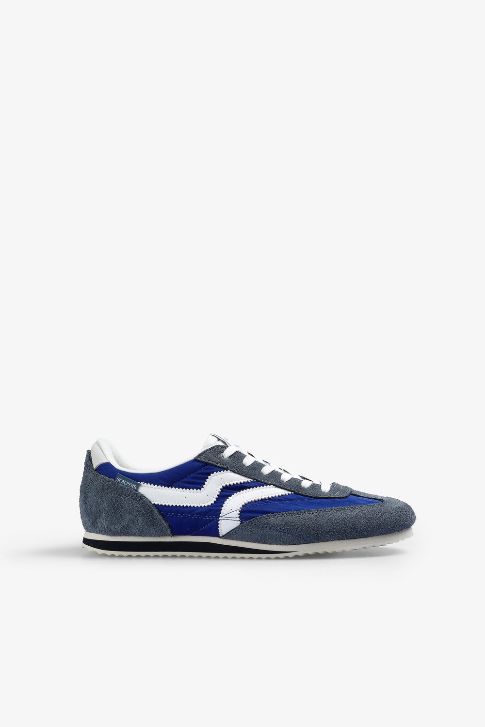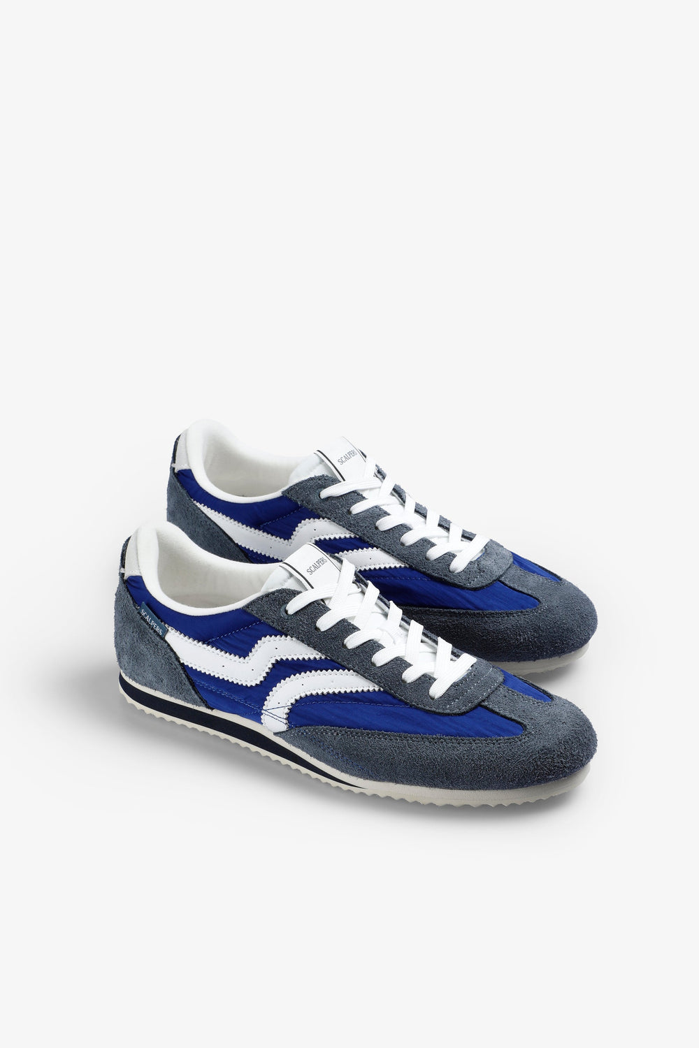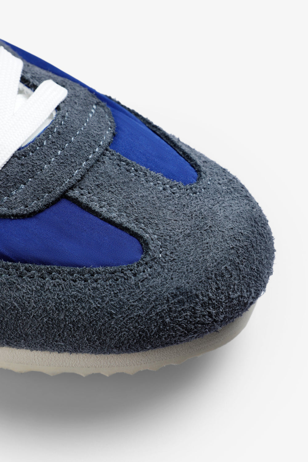 Tennis style rétro. Dessus composé d’une combinaison de pièces en tissu technique et de détails en cuir finition croûte de cuir. Semelle fine à détail contrastant.