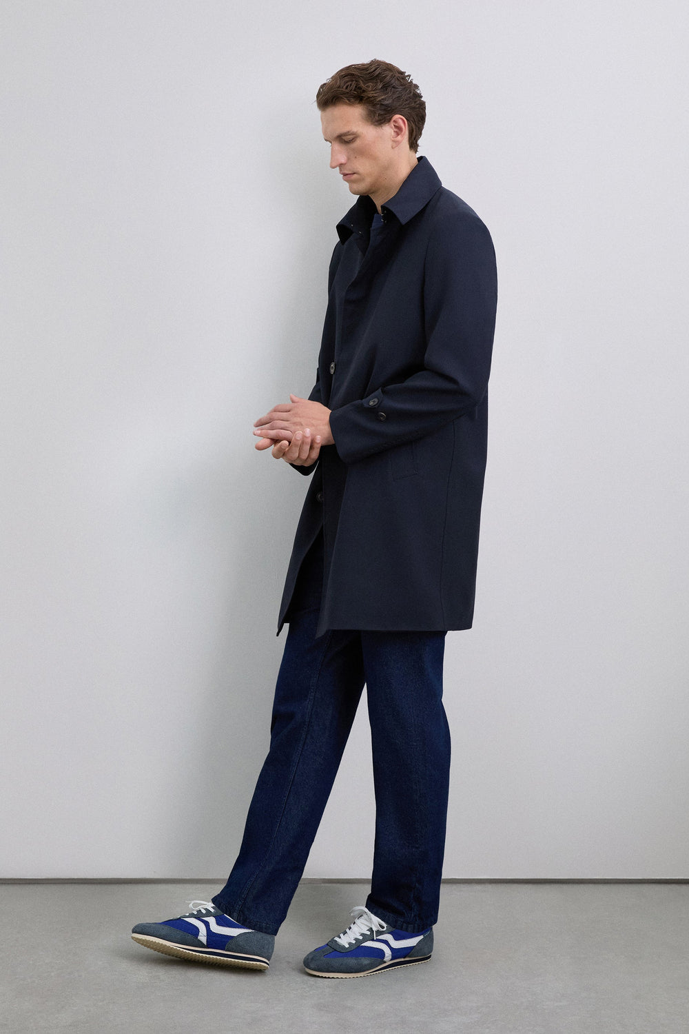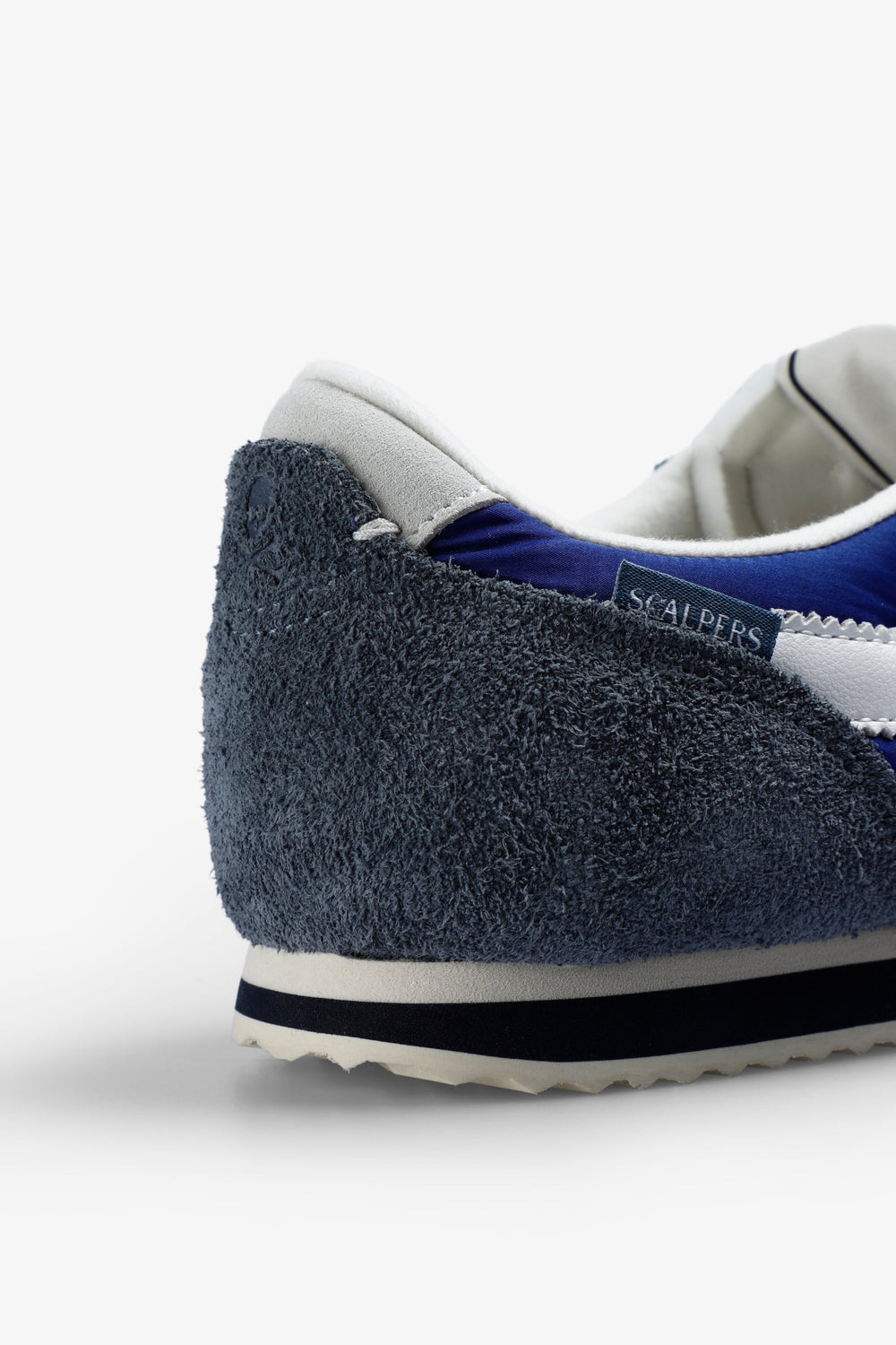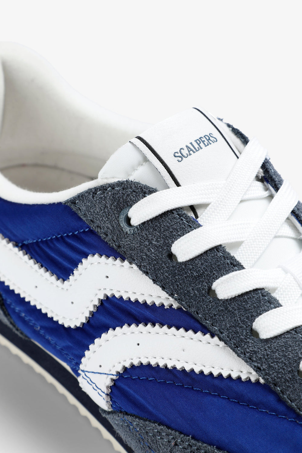 Tennis style rétro. Dessus composé d’une combinaison de pièces en tissu technique et de détails en cuir finition croûte de cuir. Semelle fine à détail contrastant.