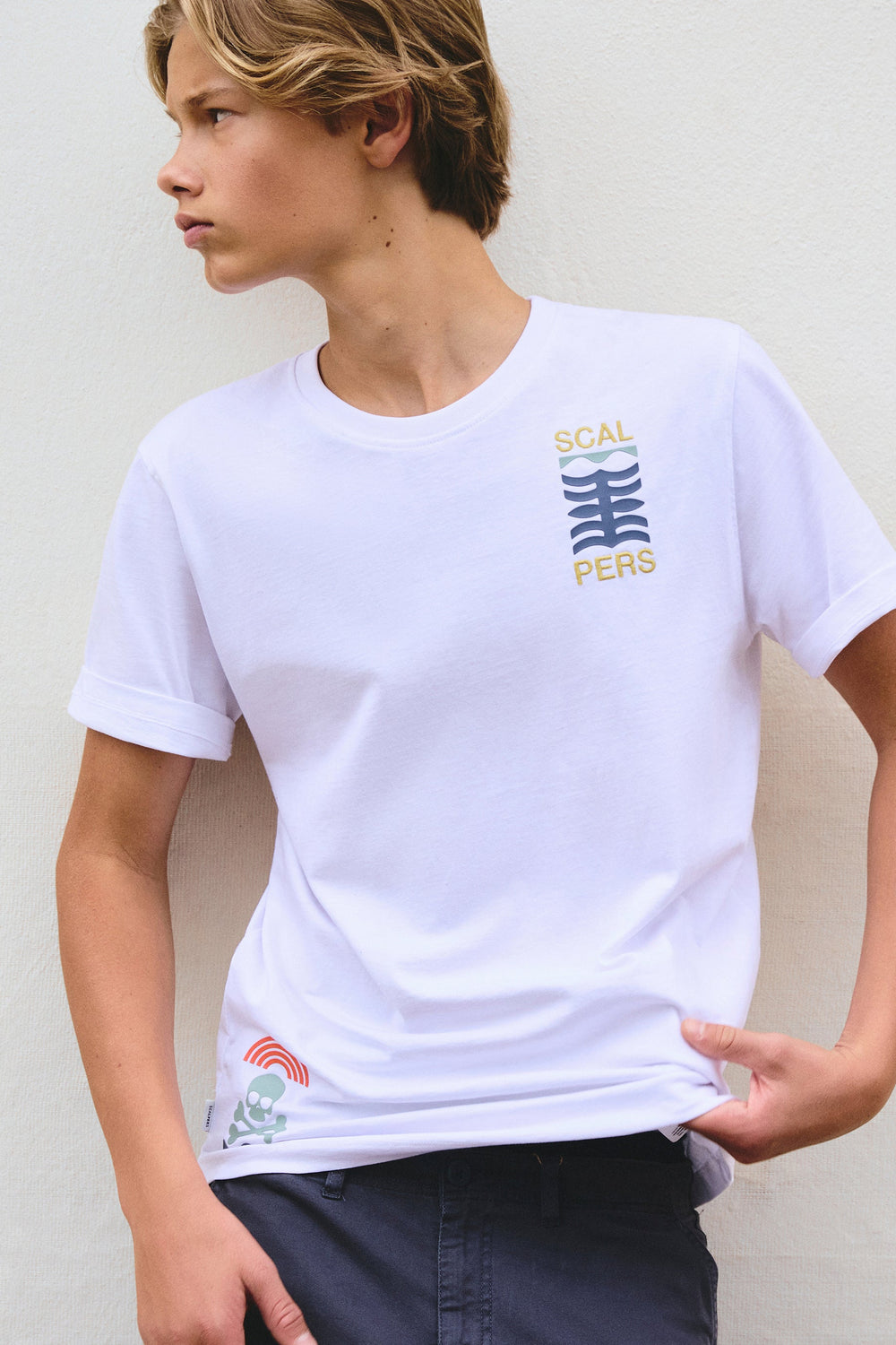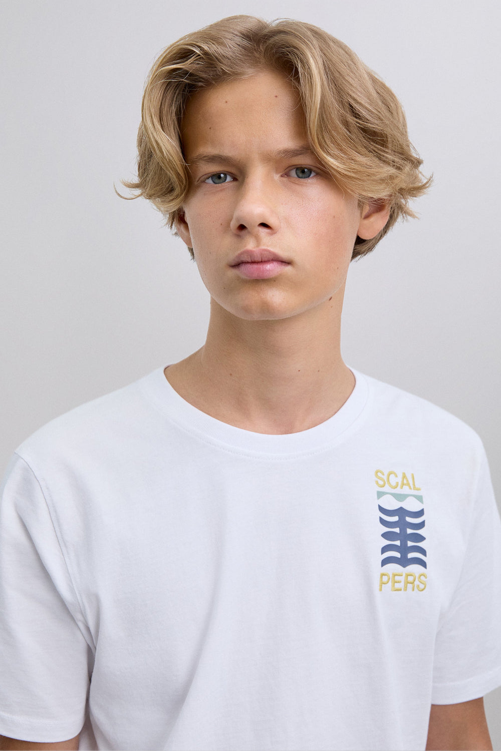 T-shirt made of 100% BCI cotton. Regular fit, short sleeves and round neck. Contrast print on front and bottom right side with embroidered logo.
