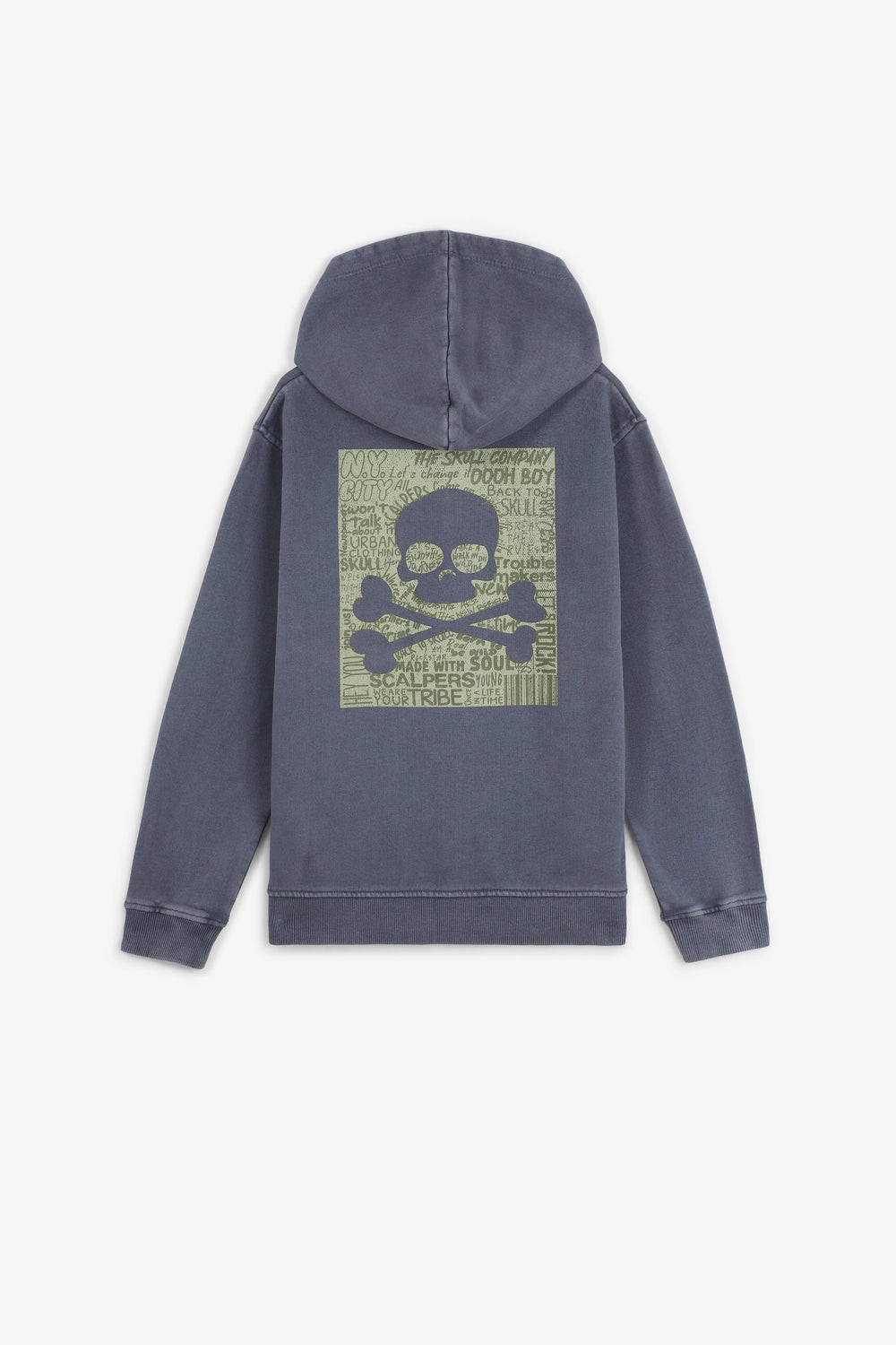 Sweatshirt with hood made of 100% BCI cotton. Print on chest and back. Long sleeves with ribbed cuffs. Front pouch pockets. Skull label detail on waistband.