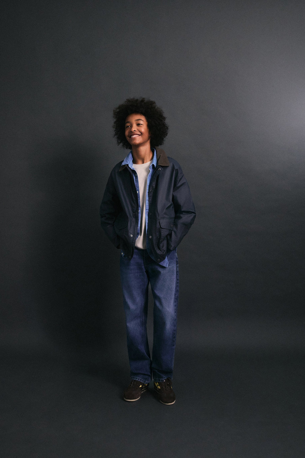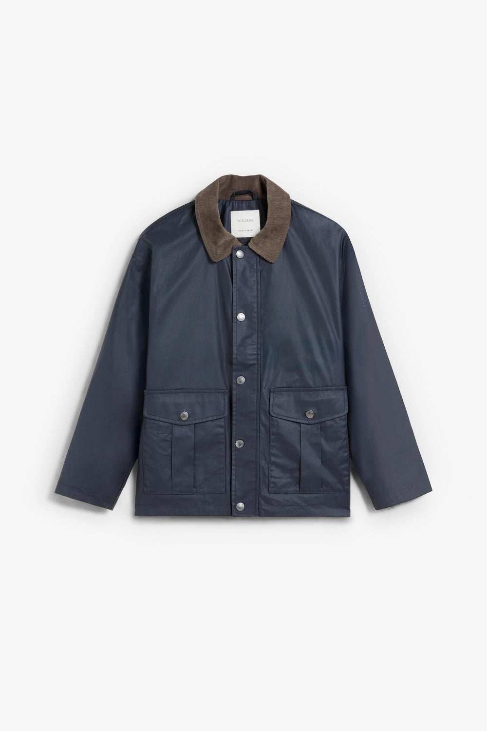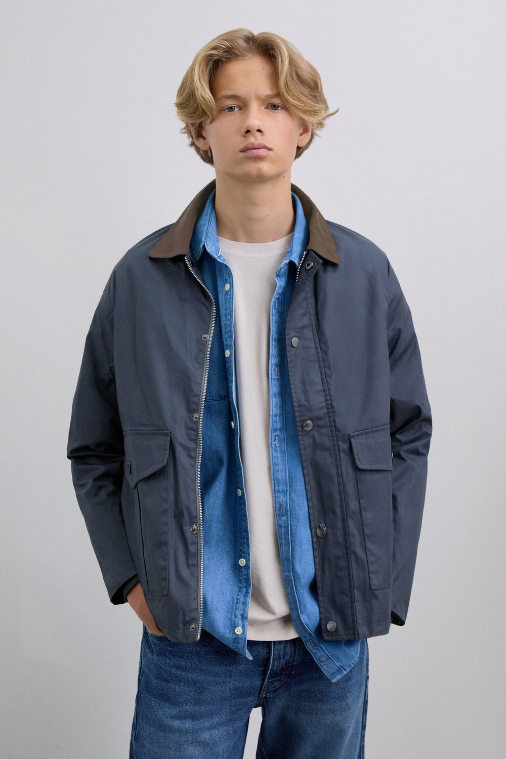Jacket made of a technical fabric. Contrast shirt collar. Regular Fit. Button fastening. Front button-up pockets. Long sleeves.