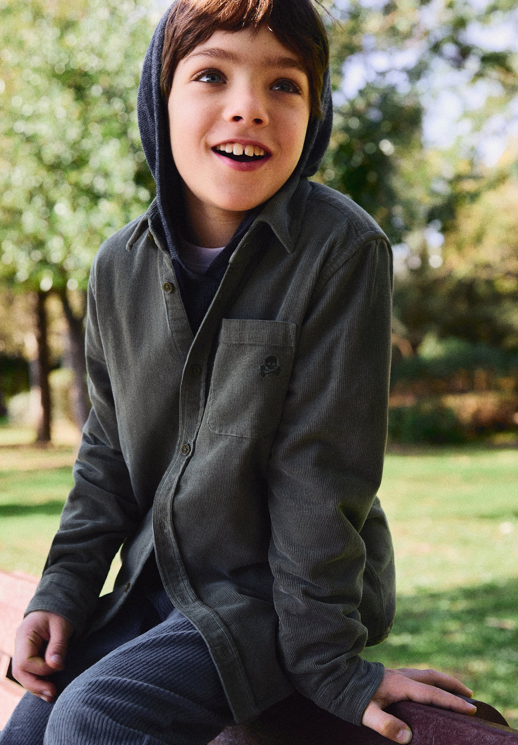 Corduroy shirt made of 100% BCI cotton. Regular Fit. Button fastening. Long sleeves with buttoned cuffs. Matching embroidered skull on the chest.