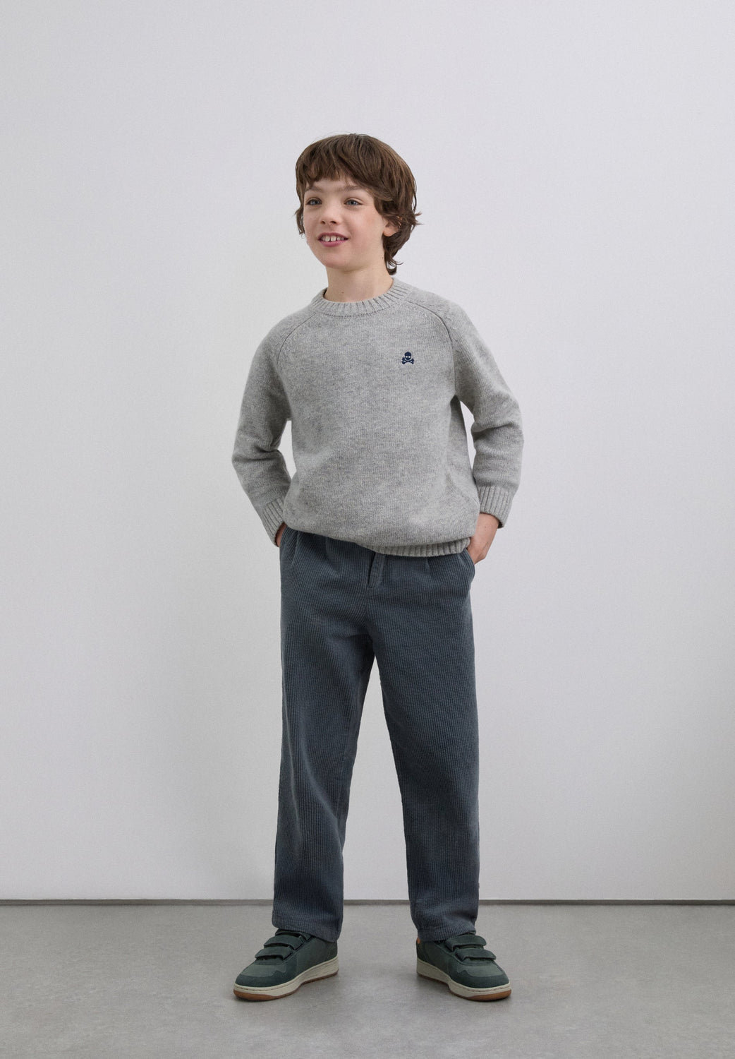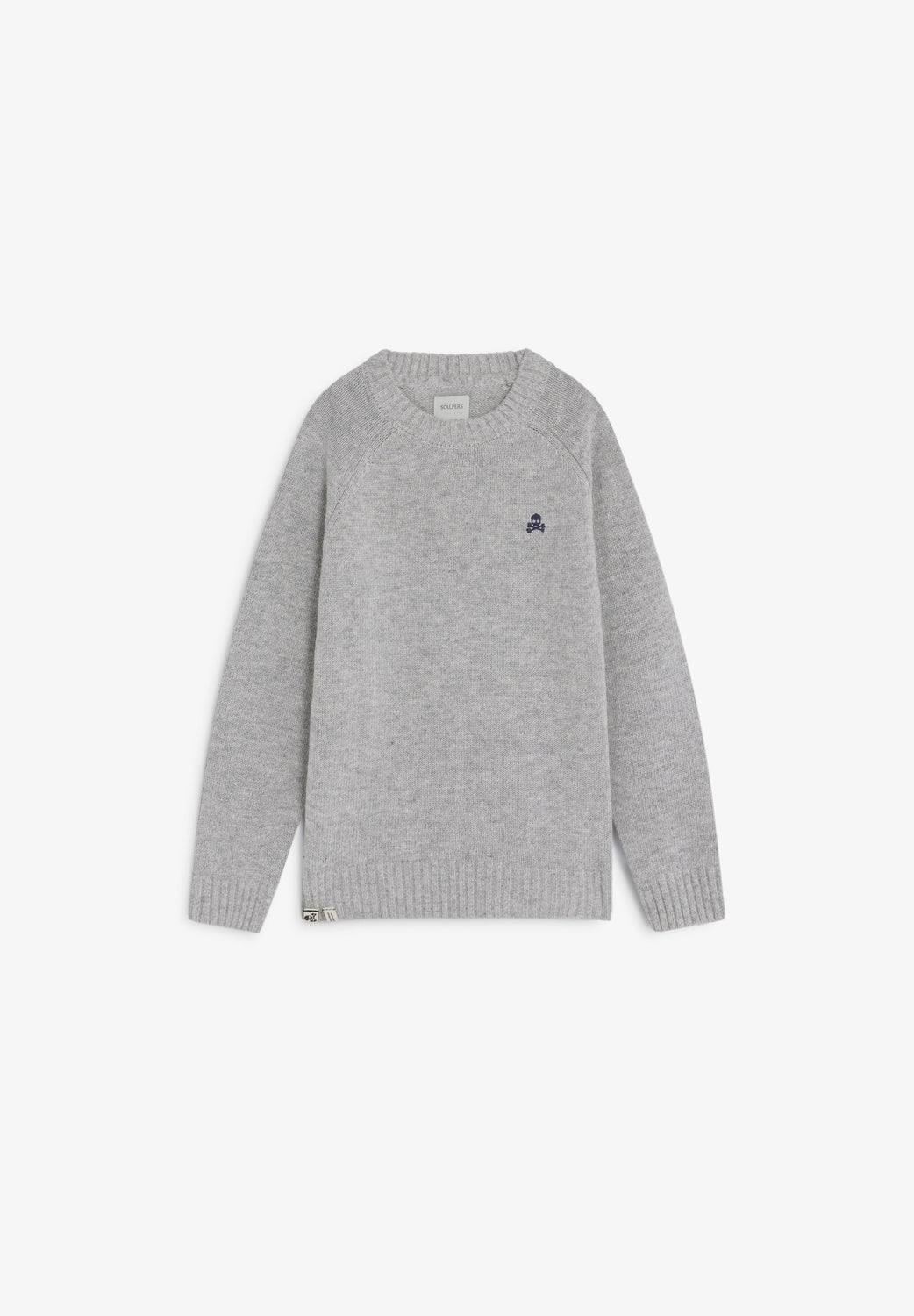 Sweater made of a wool blend. Regular fit, round neck and long raglan sleeves. Contrast embroidered skull.