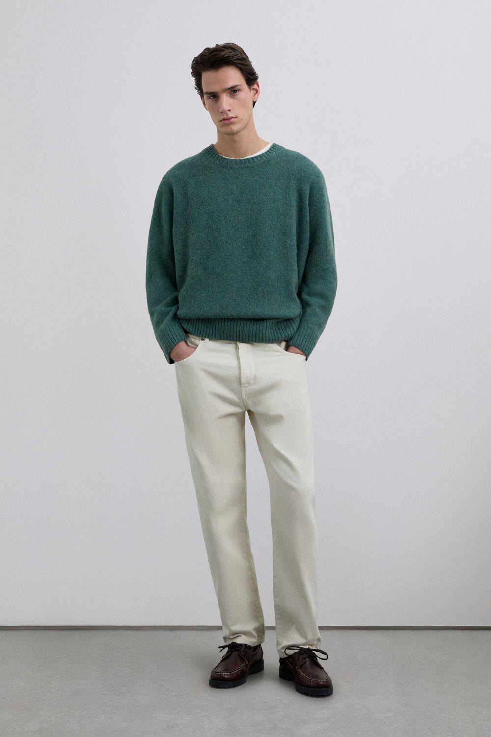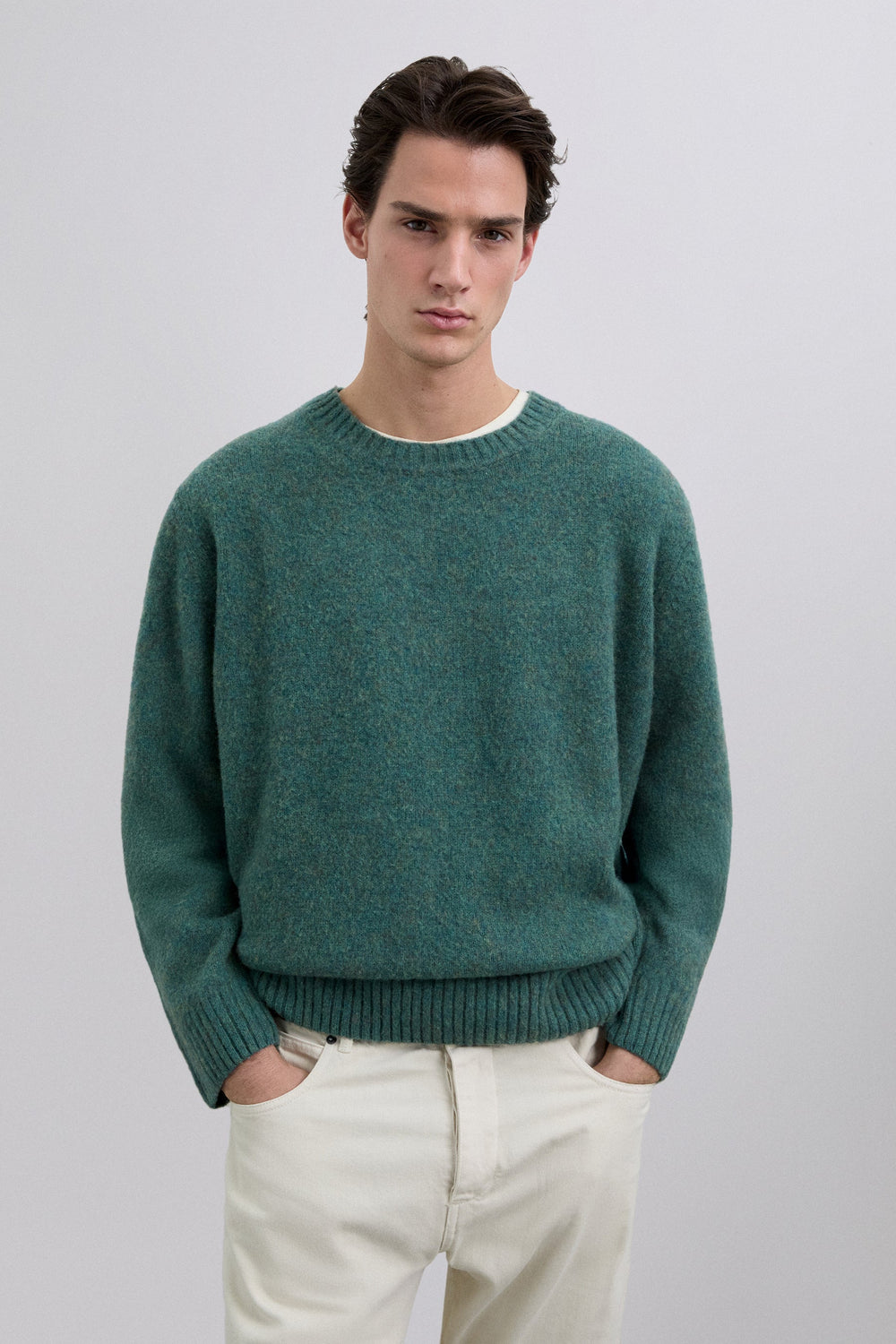 Trui gemaakt van 100% wol. Geborsteld effect. Ronde hals. Lange mouwen. Regular fit. Ribboorden.