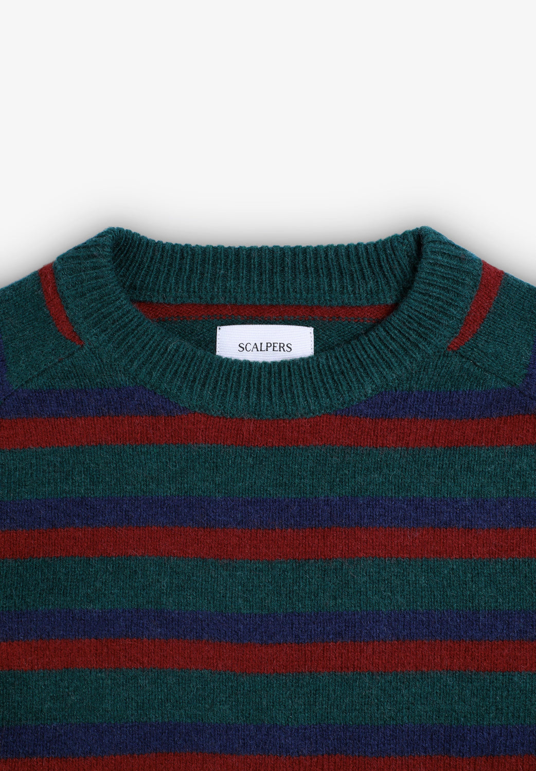 Trui gemaakt van wol. Gestreepte print. Regular fit. Ronde hals. Lange mouw. Ribboorden.