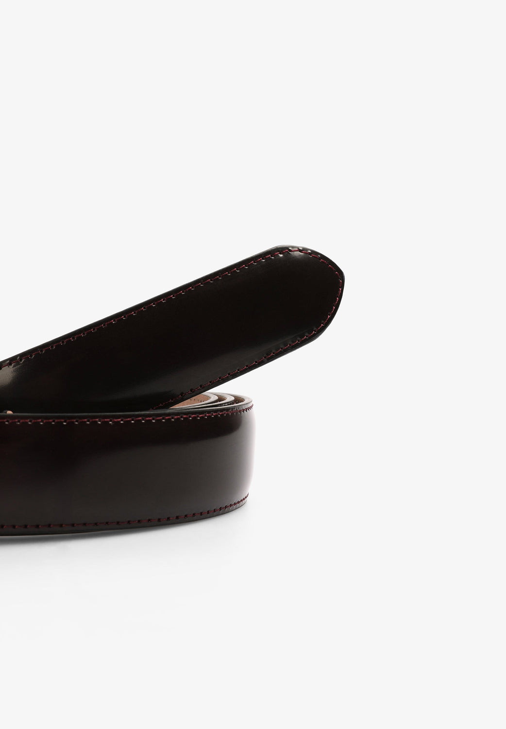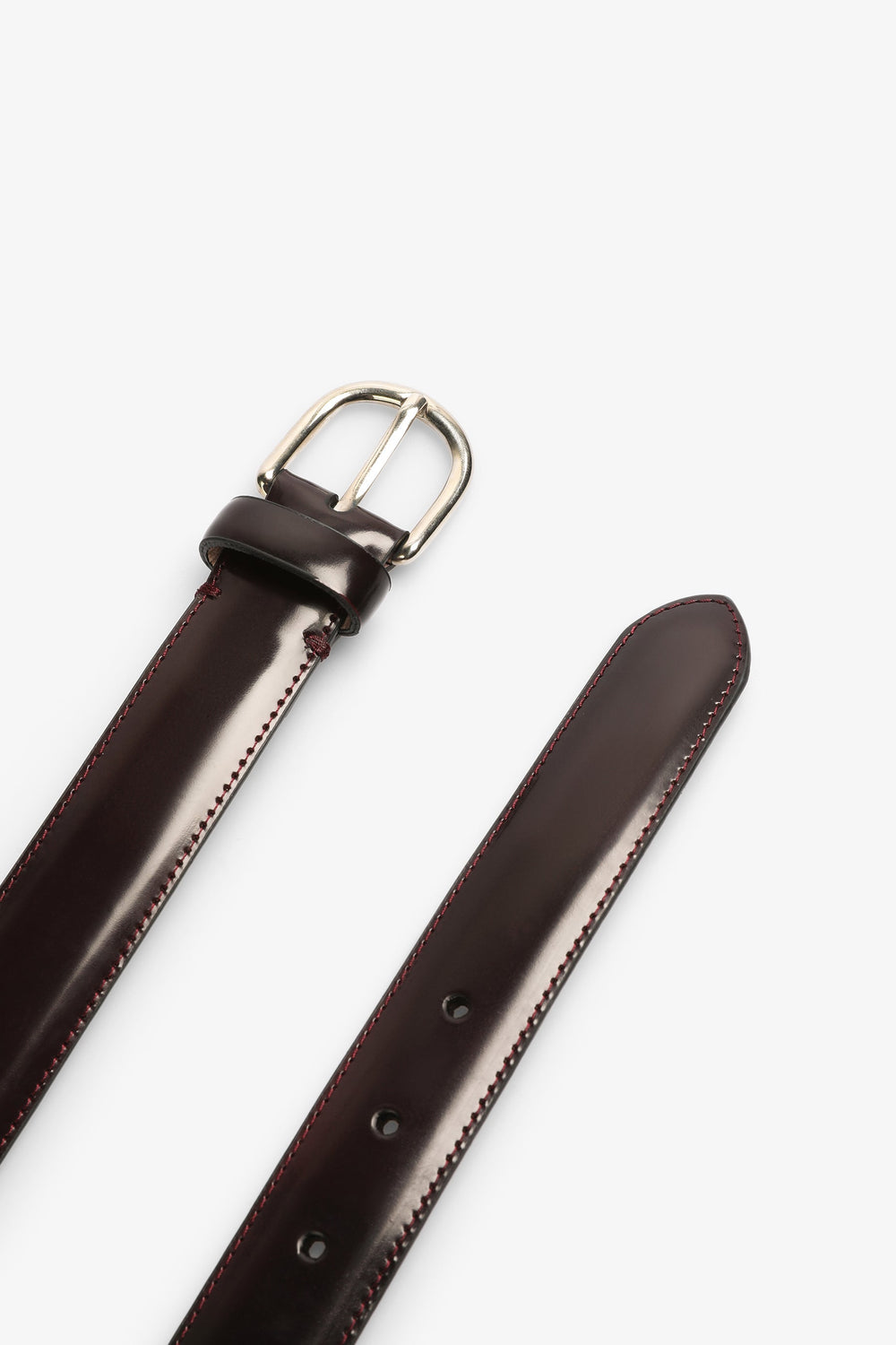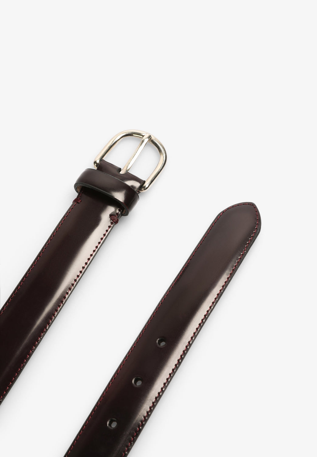 Belt made of 100% leather with a shiny finish. Metal buckle.