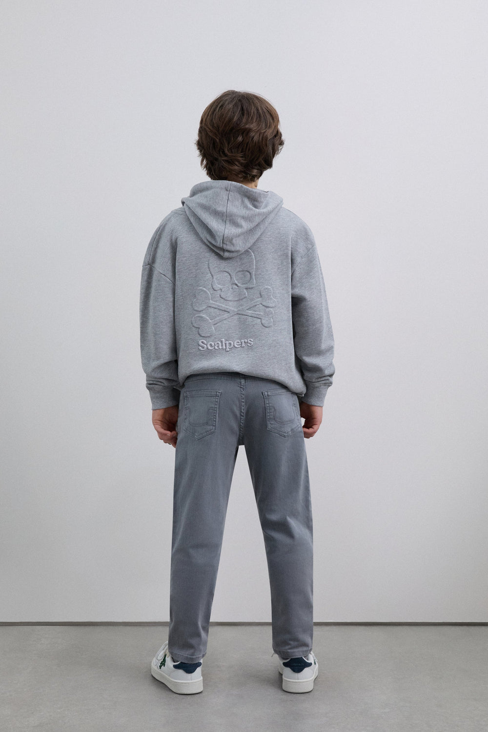 Broek gemaakt van biologisch BCI-katoen. Knoopsluiting aan de voorkant. Voor- en achterzakken.