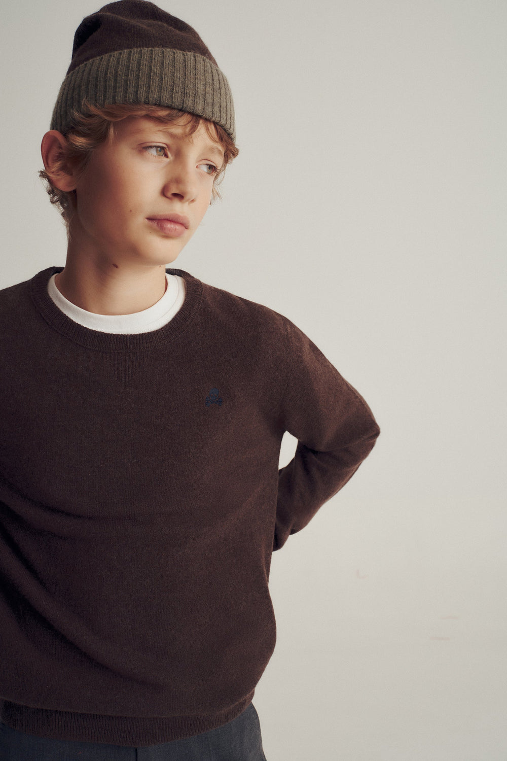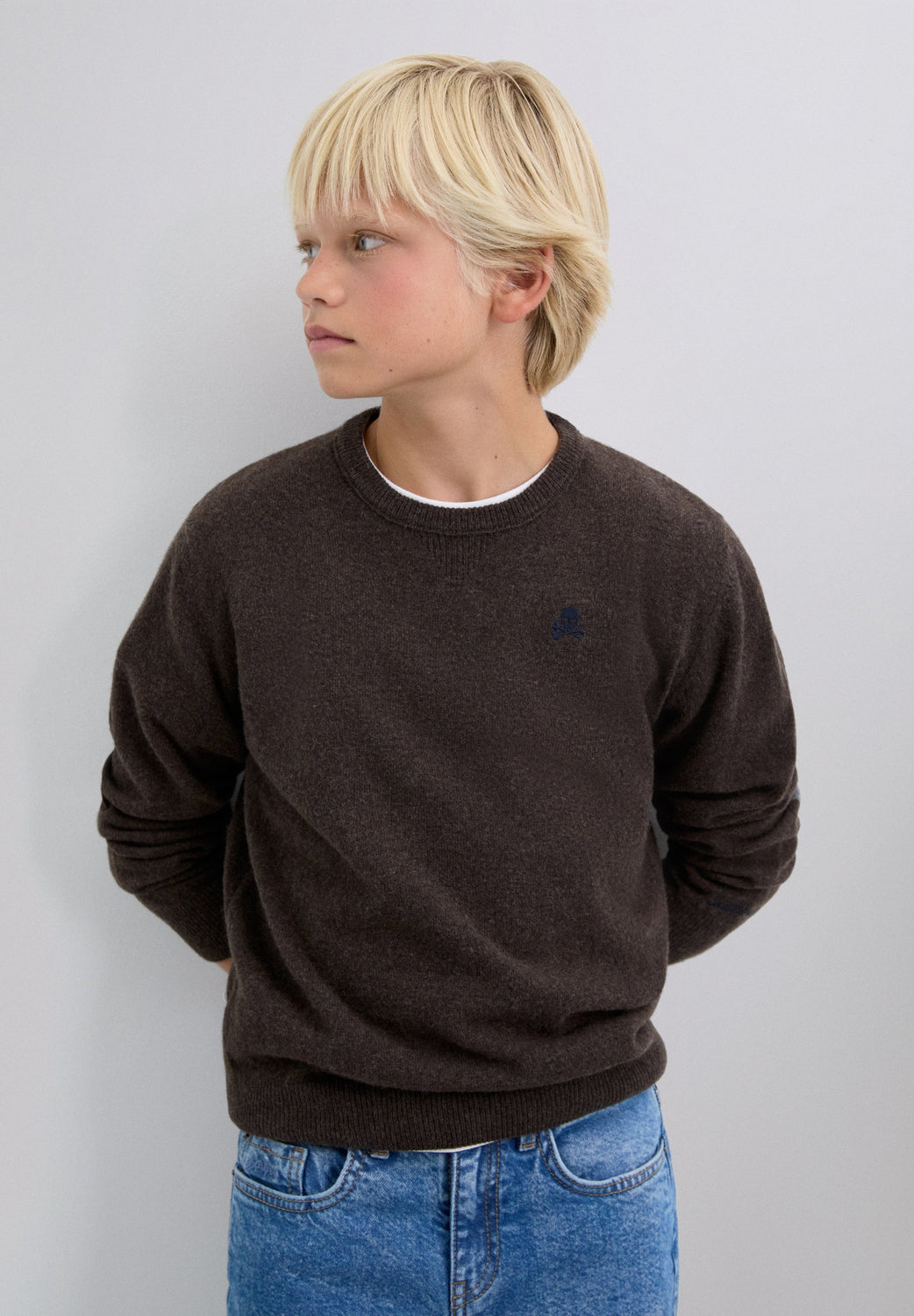Trui gemaakt van wol- en polyamidemix. Regular fit. Ronde hals. Lange mouw. Geborduurd contrasterend doodshoofd. Ribboorden Contrasterende doodshoofdpatch op de elleboog.