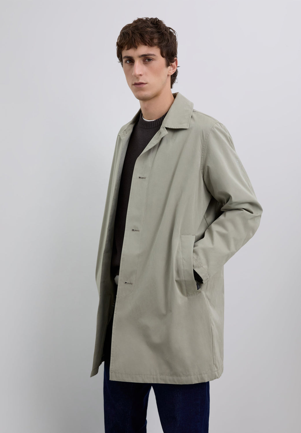 Trenchcoat met knoopsluiting aan de voorkant. Overhemdkraag. Twee schuine zakken aan de voorkant. Naaddetails over de lengte van het kledingstuk. Sluiting aan de voorkant met knoopbies. Geruite voering aan de binnenkant. Logolabel op de zak en binnenkant en doodshoofdprint op de mouw.