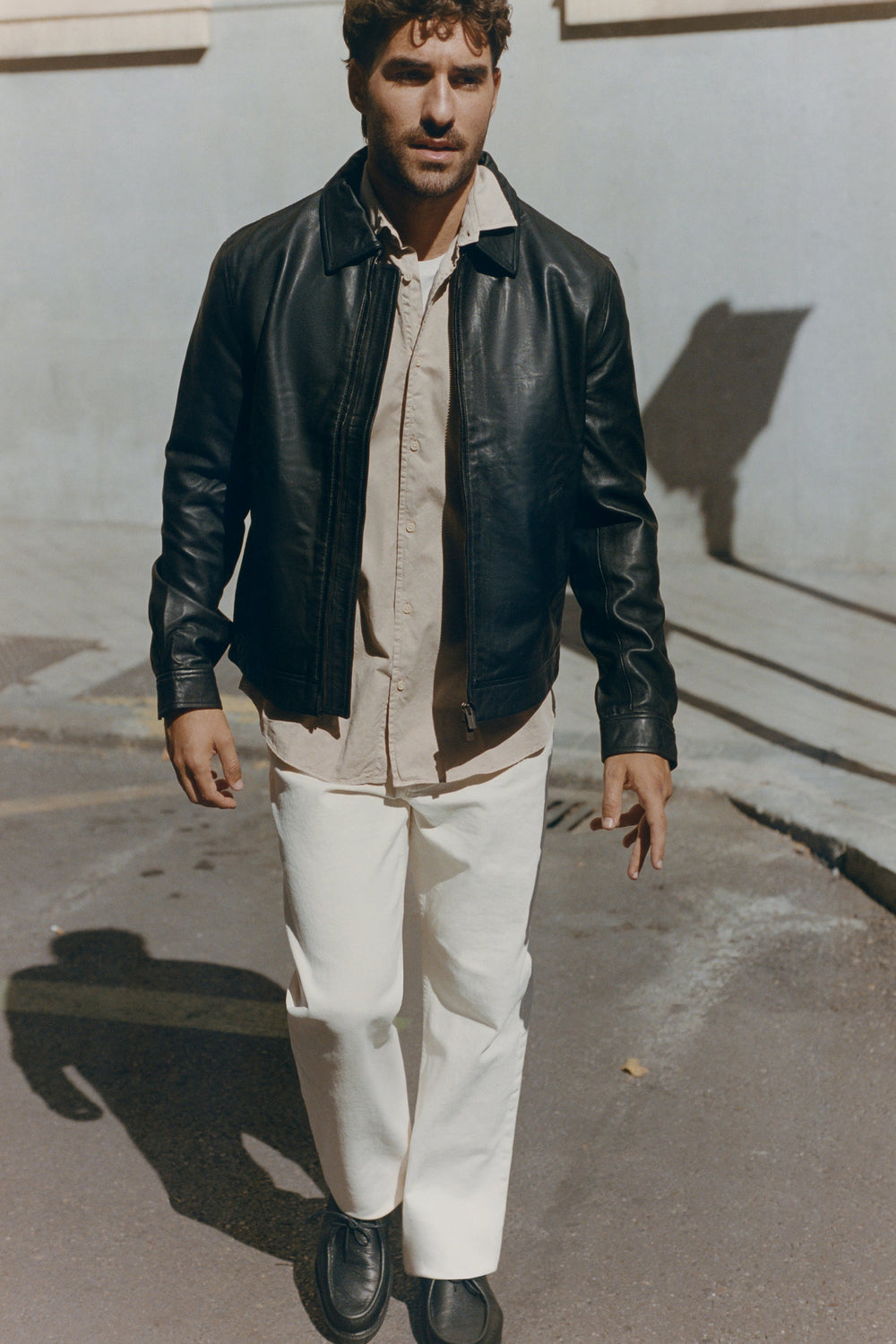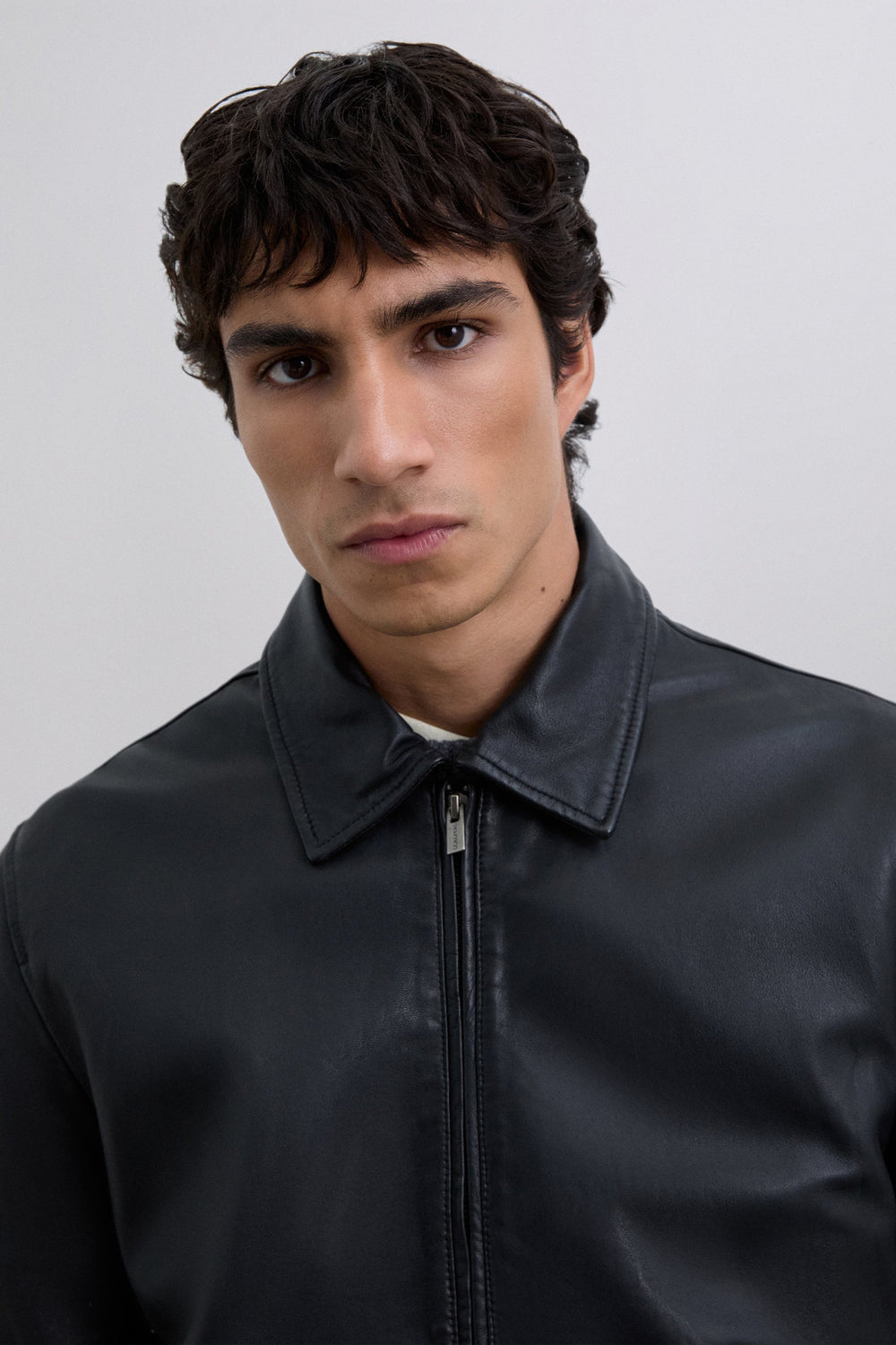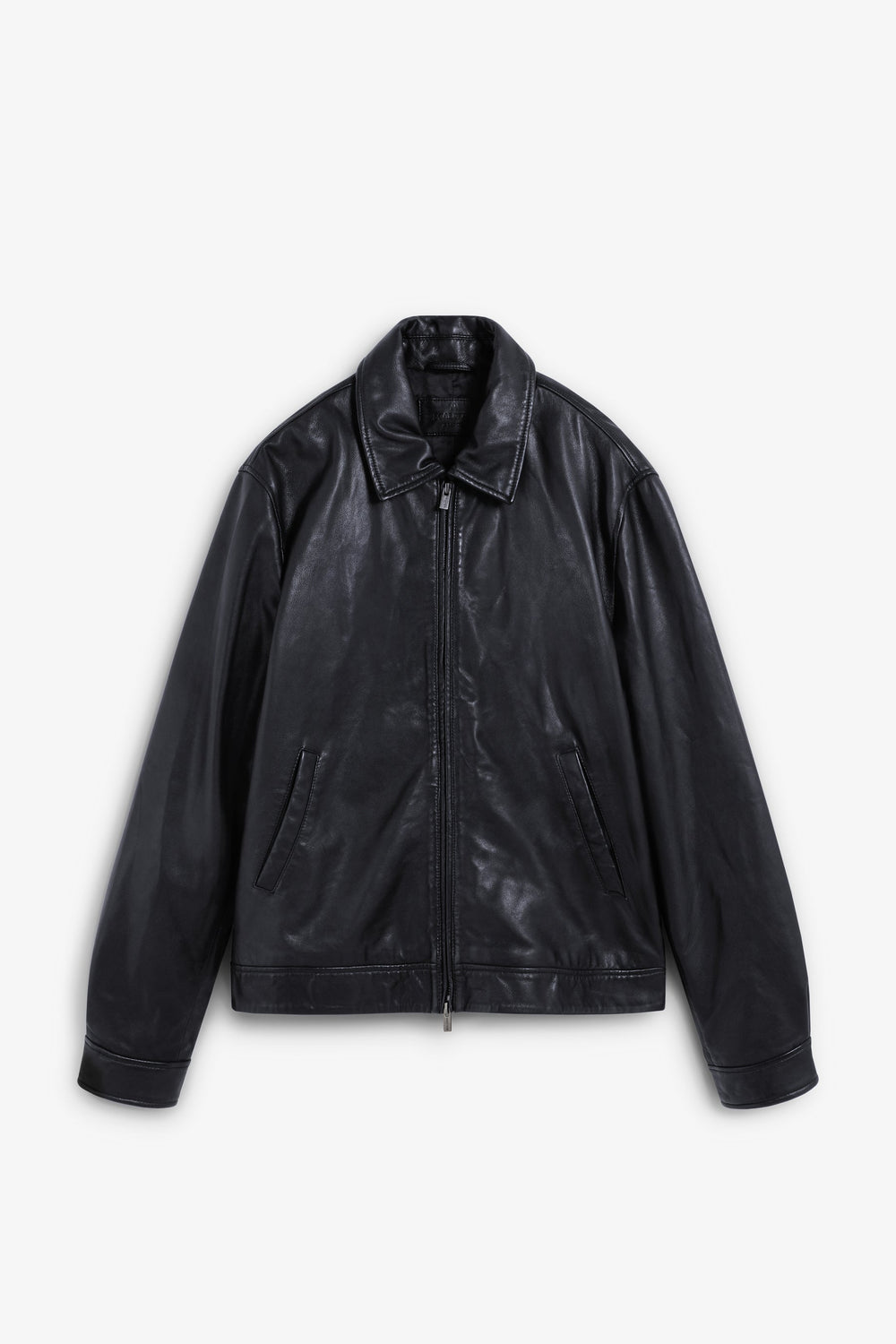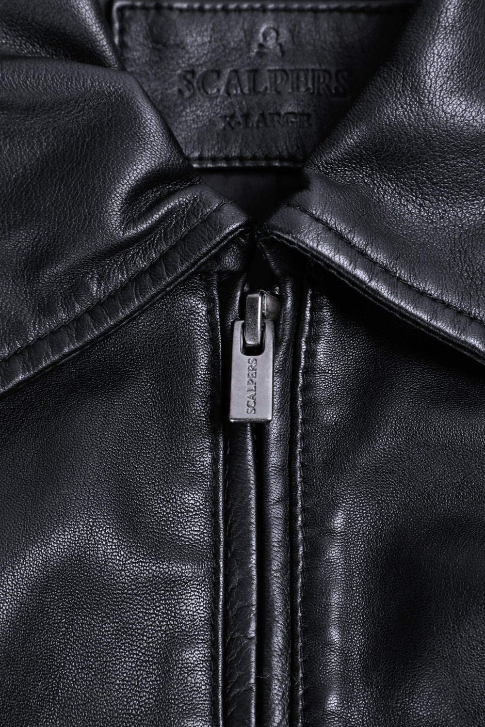 Jack gemaakt van 100% leer. Overhemdkraag. Lange mouw. Dubbele ritssluiting. Twee zakken aan de voorkant. Manchetten met knoop. Geborduurd logo en doodshoofd aan de binnenkant.