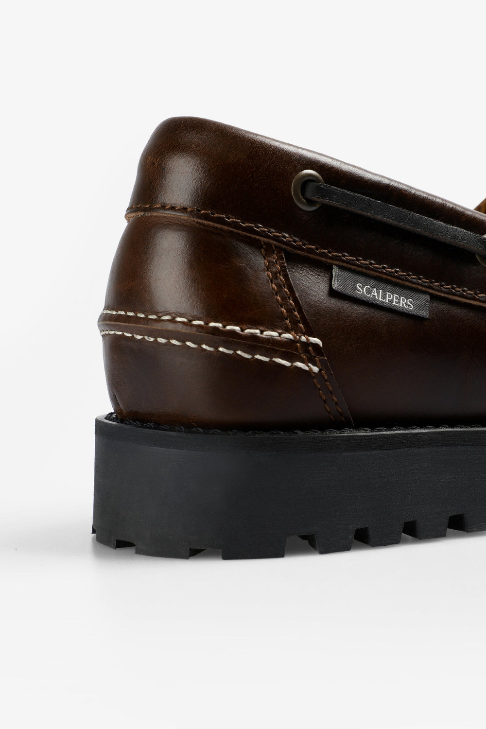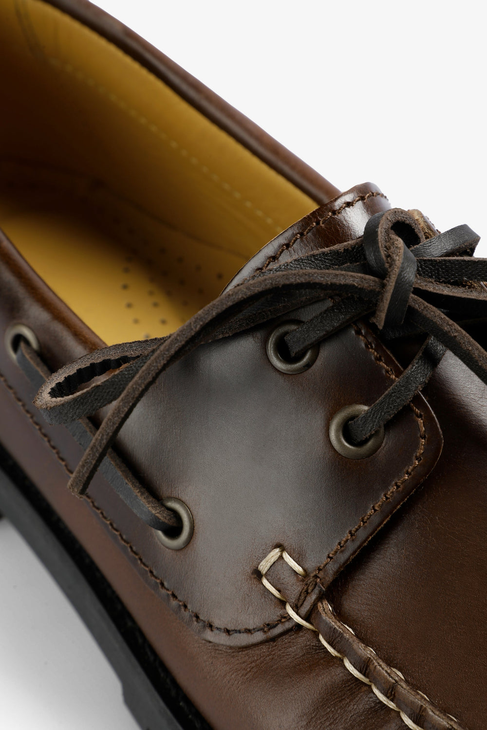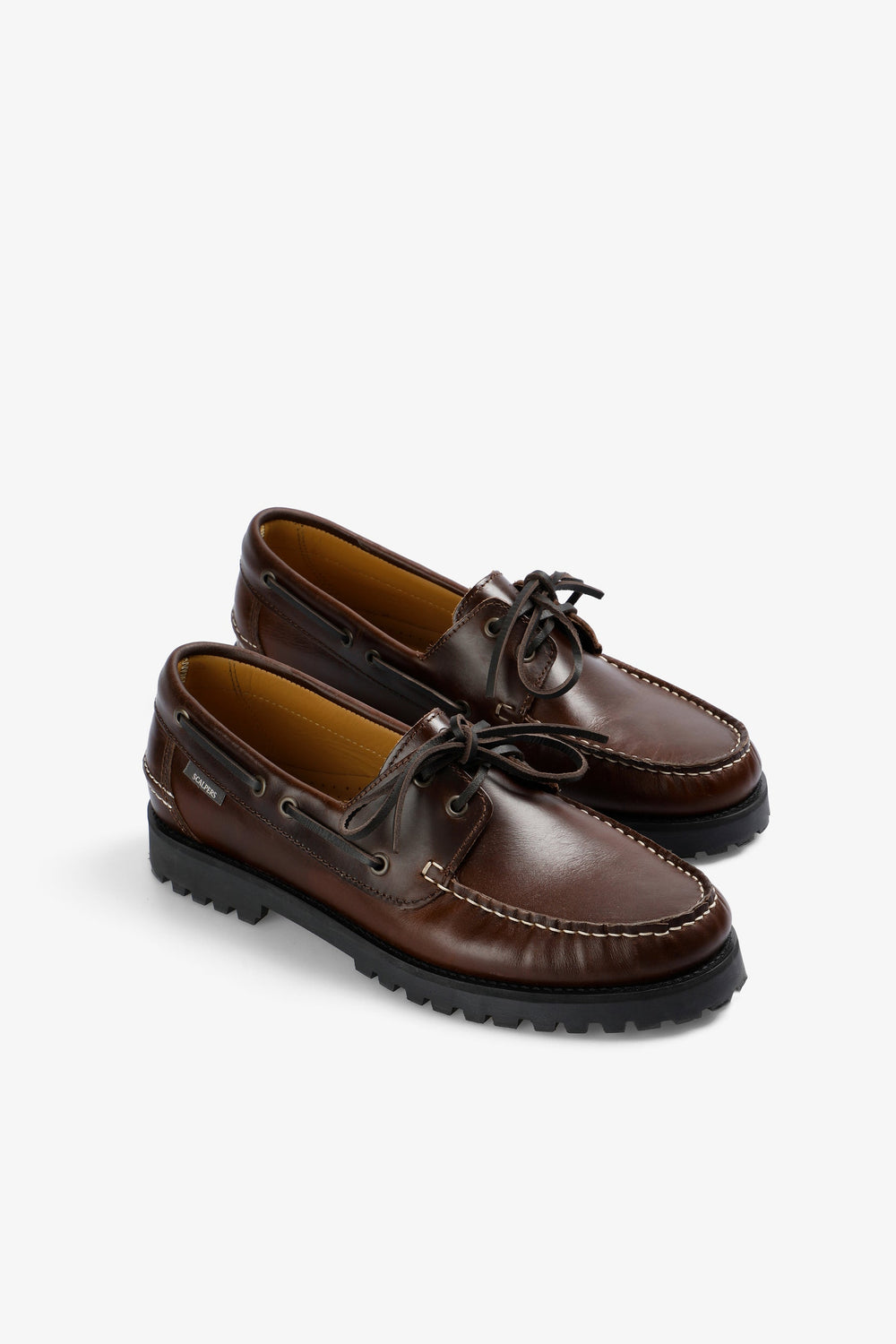 Schoenen, type nautisch, gemaakt van leermix. Vetersluiting, uitgesproken gekartelde zool. Etiket aan de zijkant.