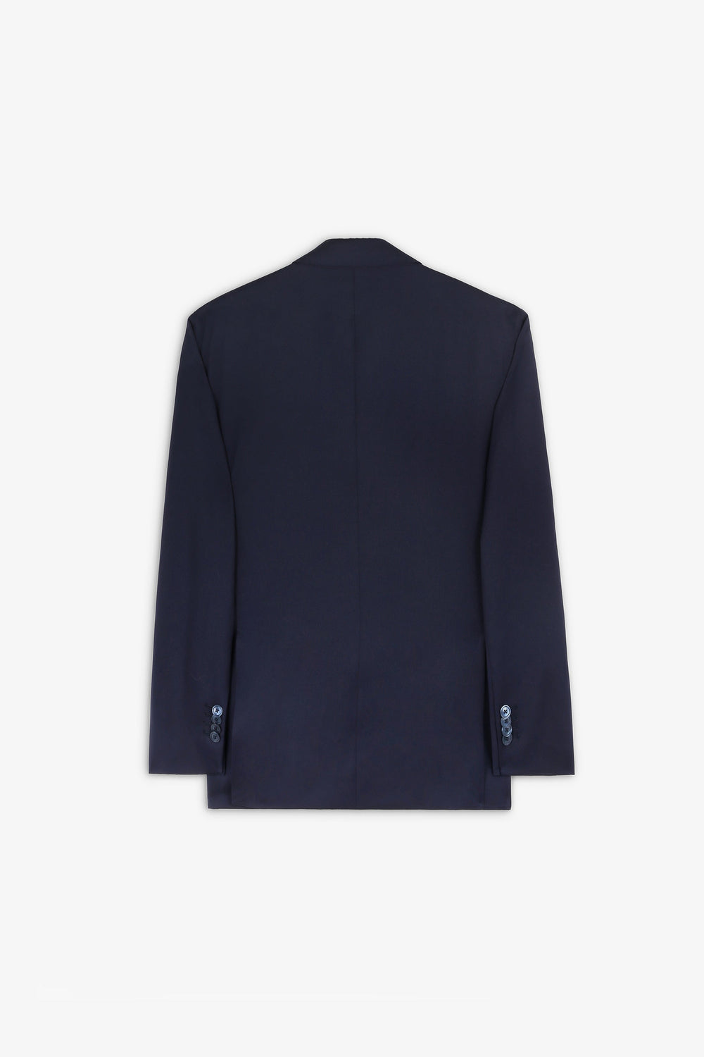 - Americana con solapas de muesca con punta redondeada, cierre con dos botones. Manga con hombrera armada. Bolsillos con solapas.