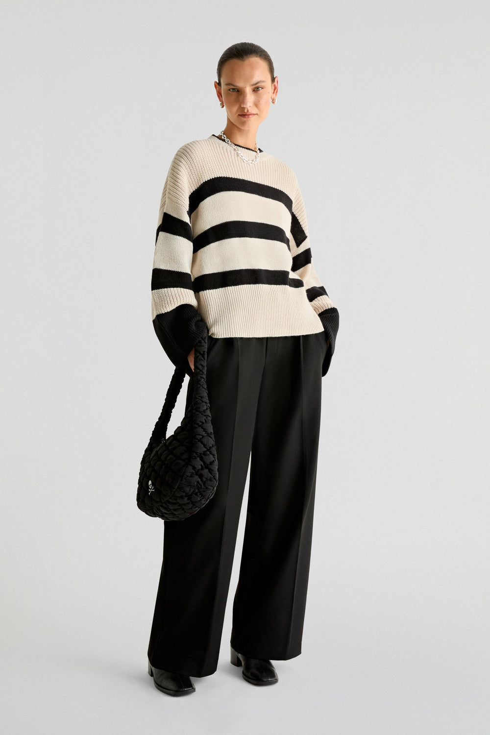 Sweater made of a wool blend, with stripes. Regular fit, round neck and flared long sleeves.