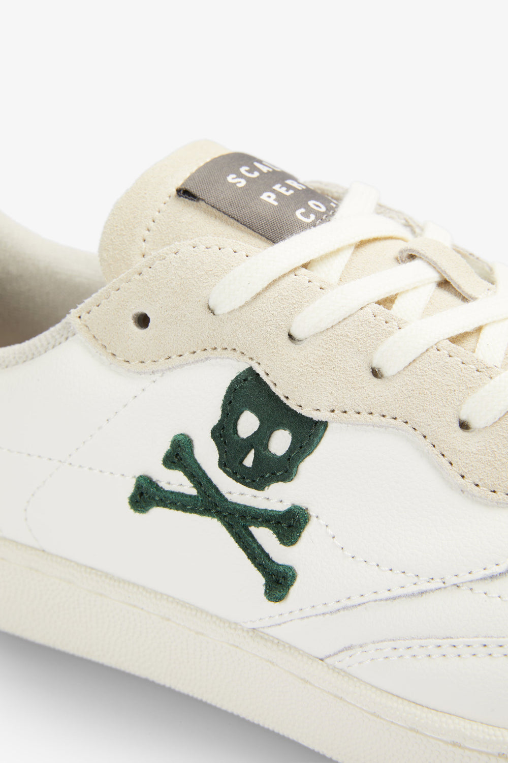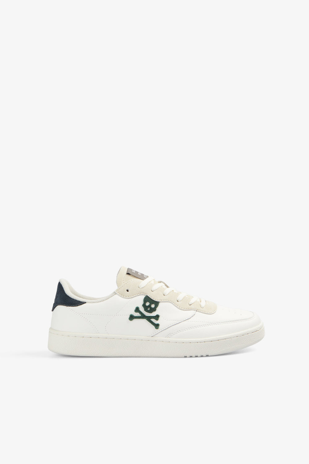 Sneakers con calavera lateral a contraste confeccionada en piel. Cierre con cordones moteados, suela de TPR, detalle a contraste en talón y detalle de etiqueta en lengüeta personalizada.